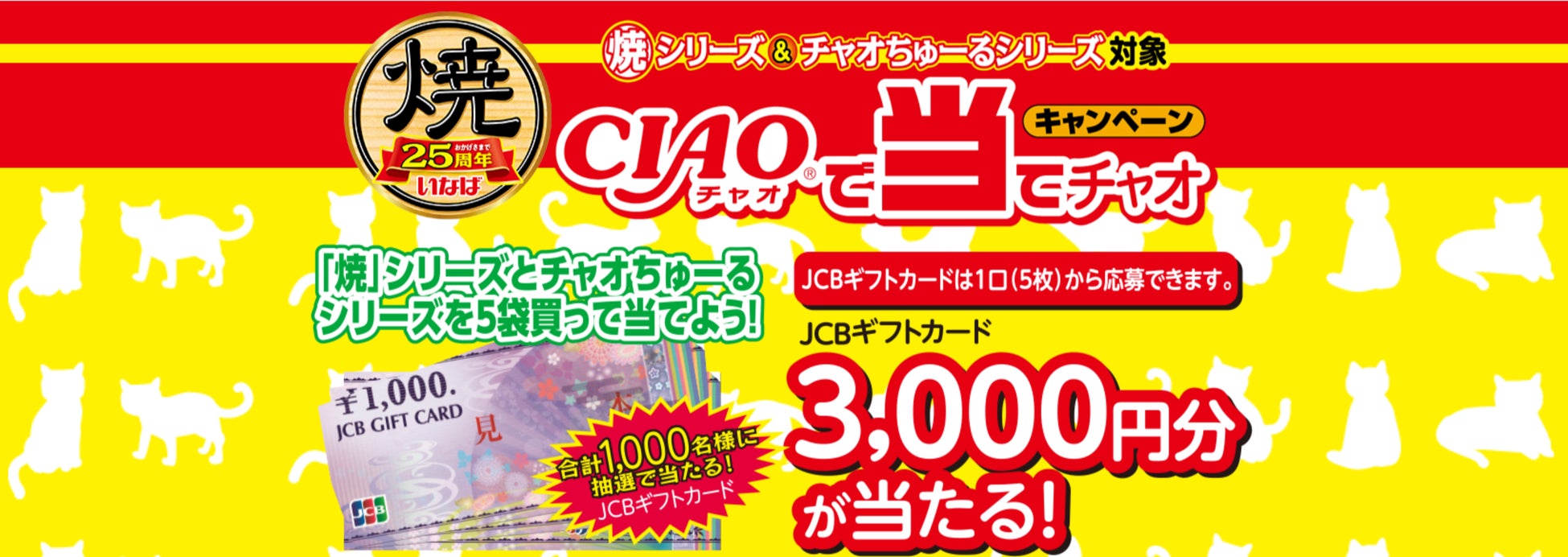 いなばペットフード株式会社(本社:静岡県静岡市)は、CIAO焼シリーズ・CIAOちゅ~るの消費者キャンペーン「CIAOで当てチャオ」を昨年に引き続き実施することとなりました。