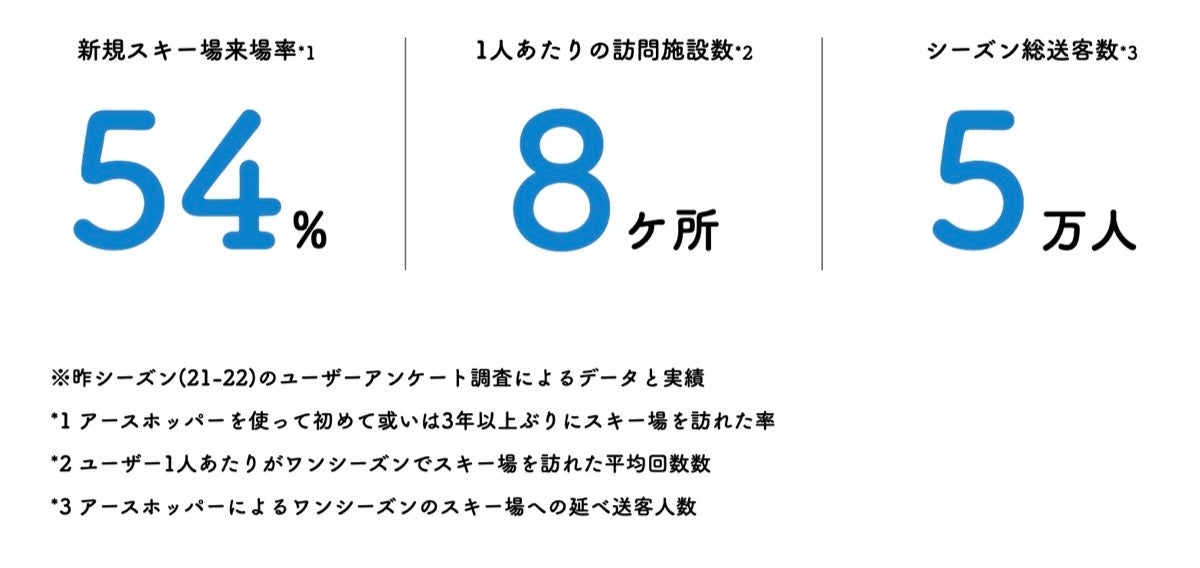 私たちはスキー・スノーボード人口の回復とアーススポーツの普及を目指しています。スキー・スノーボードをはじめとするアーススポーツが今以上に「お金のかかる、手を出しづらい趣味」として敬遠されてしまうことを懸念し、ワンプライスの買い切り型でお得に楽しむスタイルを定着させていきたいと考えています。10月11日には 水際対策の大幅な緩和により外国人の個人旅行が解禁され、スノーリゾートにも観光客の増加が期待できます。 3年ぶりに心置きなくホッピングできる冬に向け、ひとりでも多くの方に日本の雪を楽しんで頂ける追加商品や施策を準備中です。