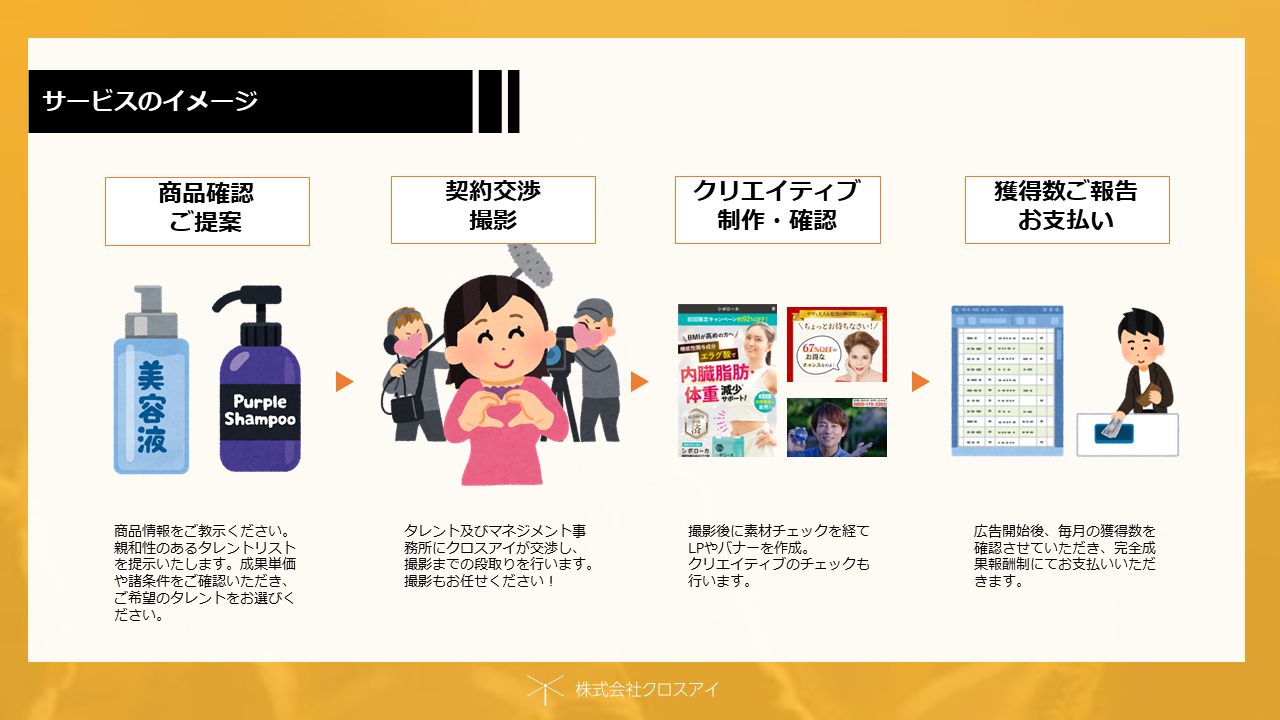 【D2C企業対象】キャスティング会社クロスアイが初期費用ゼロ円・完全成果報酬制のタレント起用サービス「アフィキャス」を開始。