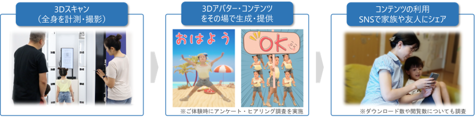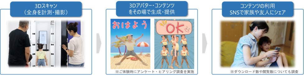 文化祭では、「アパレルとテクノロジーの未来を切り開く」をテーマにコラボレーションを展開します。参加者は自身を3Dスキャンし、わずか数十秒ですぐに自分フォトリアルアバターをスマホで入手できます。さらに、TOPPANホールディングスと共同開発したアプリを起動することで、LINE やInstagramなどのSNSで使用できるスタンプ風動画を入手できます。
