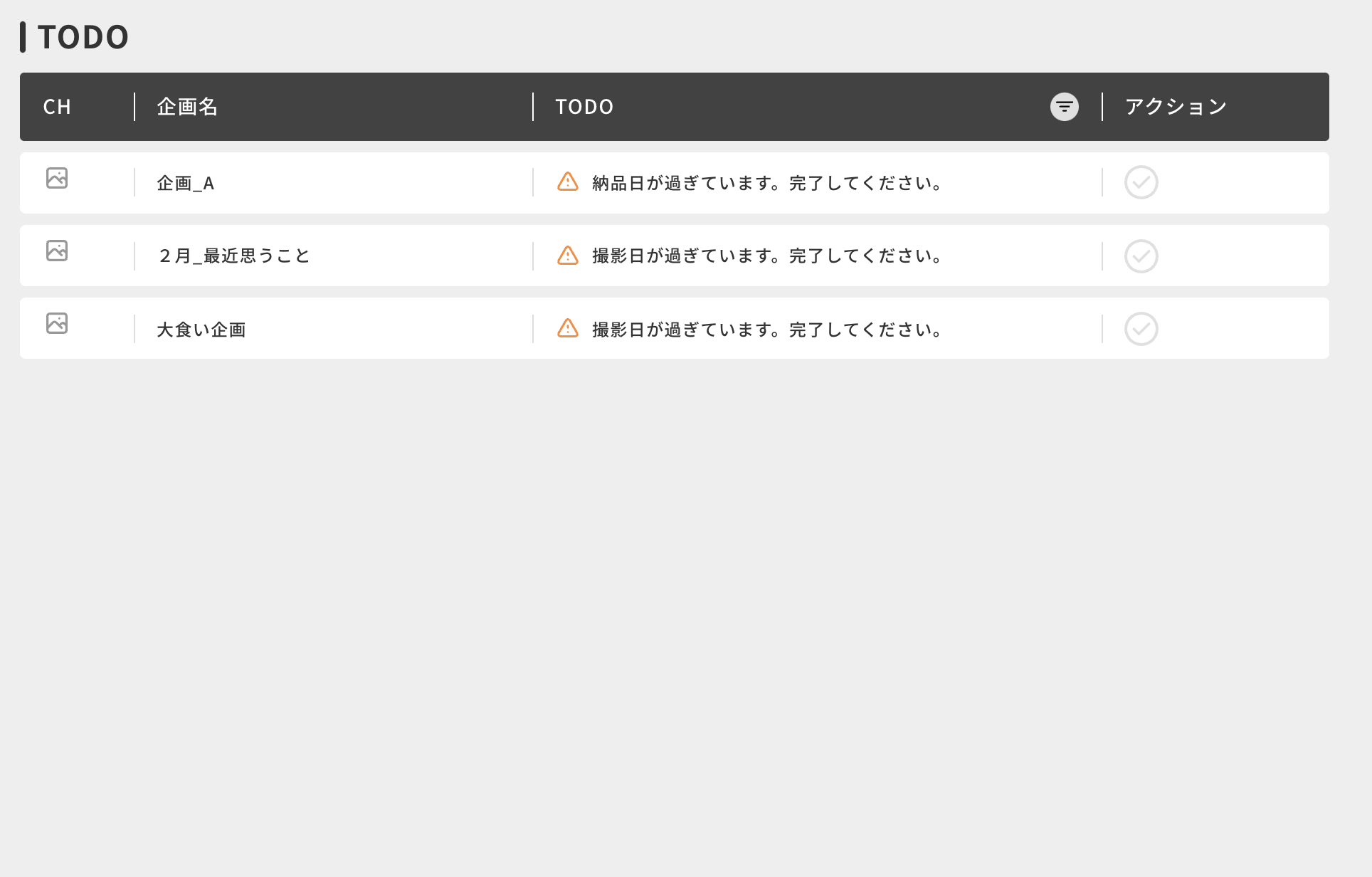 企画ごとの役割やスケジュールを元に、各自のTODOリストを自動でレコメンド・アラートします。もう煩雑なタスク管理をする必要はありません。