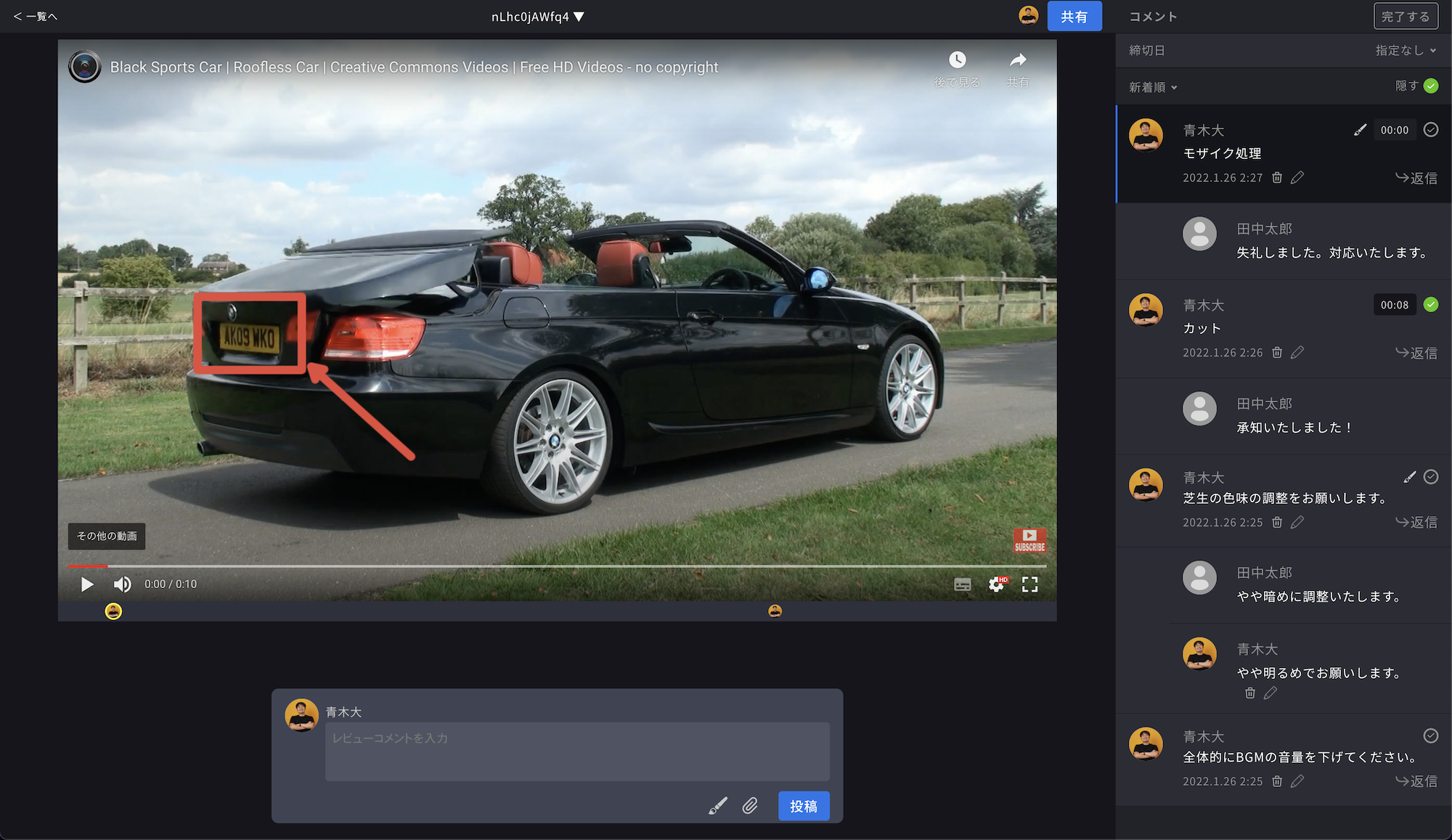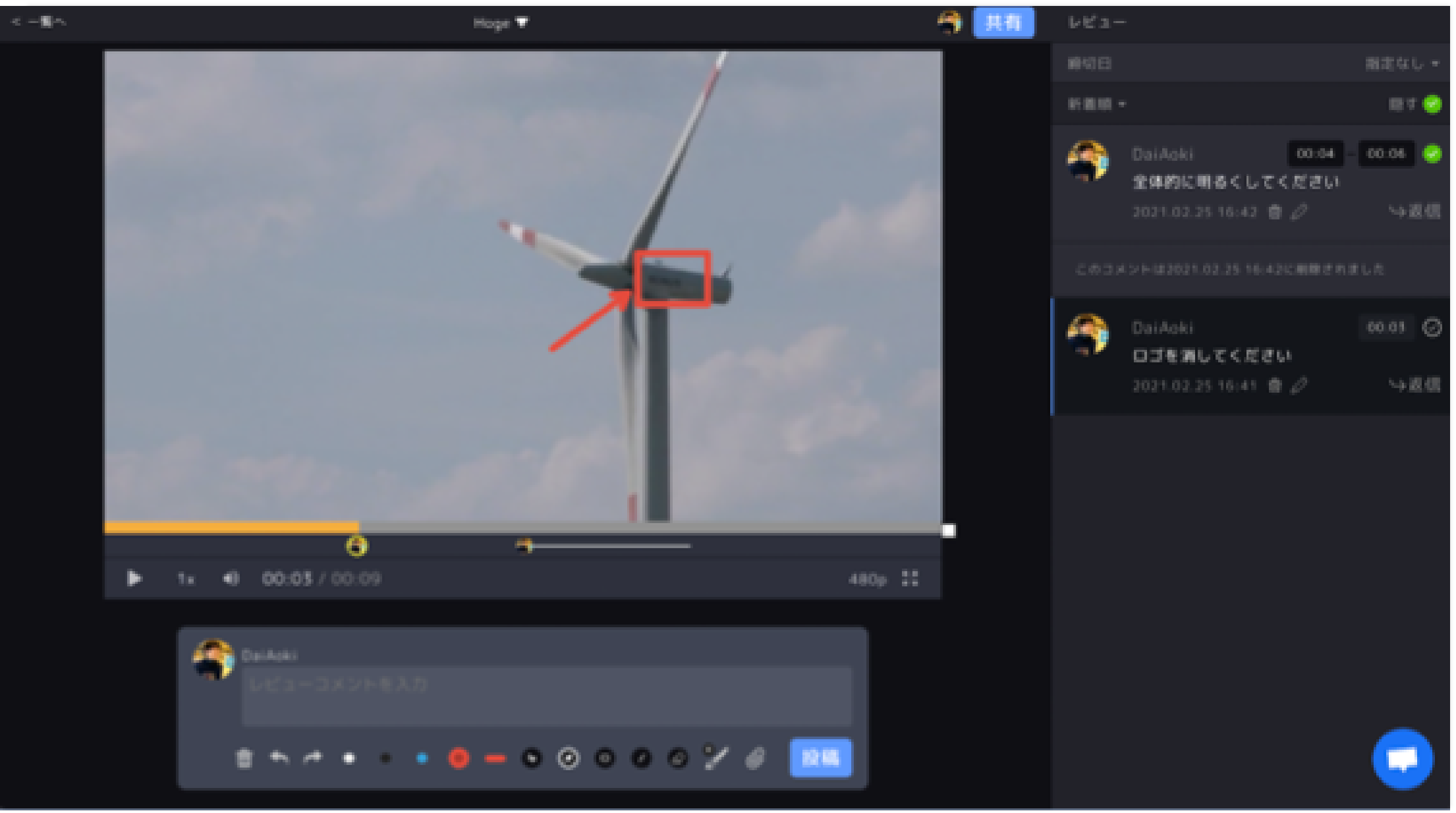 さらに、動画ごとにコメントが集約されるため、複数の動画制作を同時に進行している場合にも、情報が散らばることなく自動で整理整頓されます。