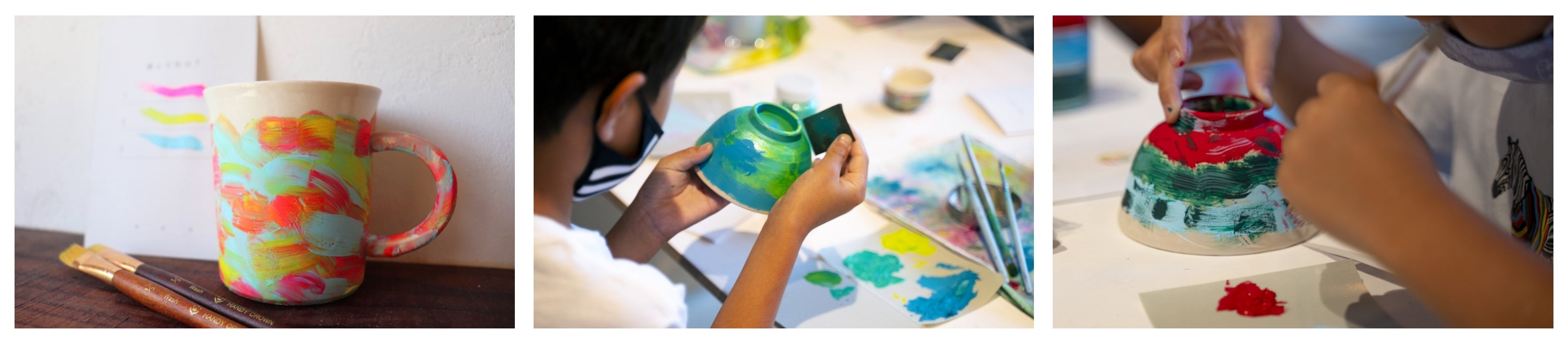 今回の限定プランでは、親子で一つ思い出の写真を選んでいただき、そこから得たインスピレーションをもとに器に絵付をします。色で表現してみたいと思う写真を、事前にスマートフォンや現像しご持参ください。