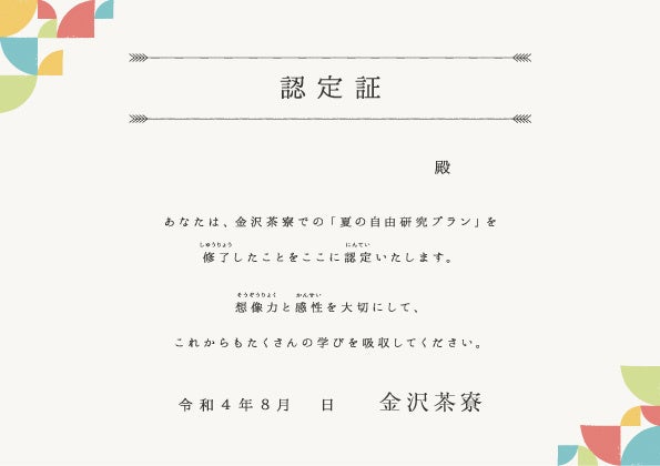 〜8月17日(水)、23日(火)、25日(木)限定で開催!金沢茶寮オリジナルの認定証をプレゼント〜