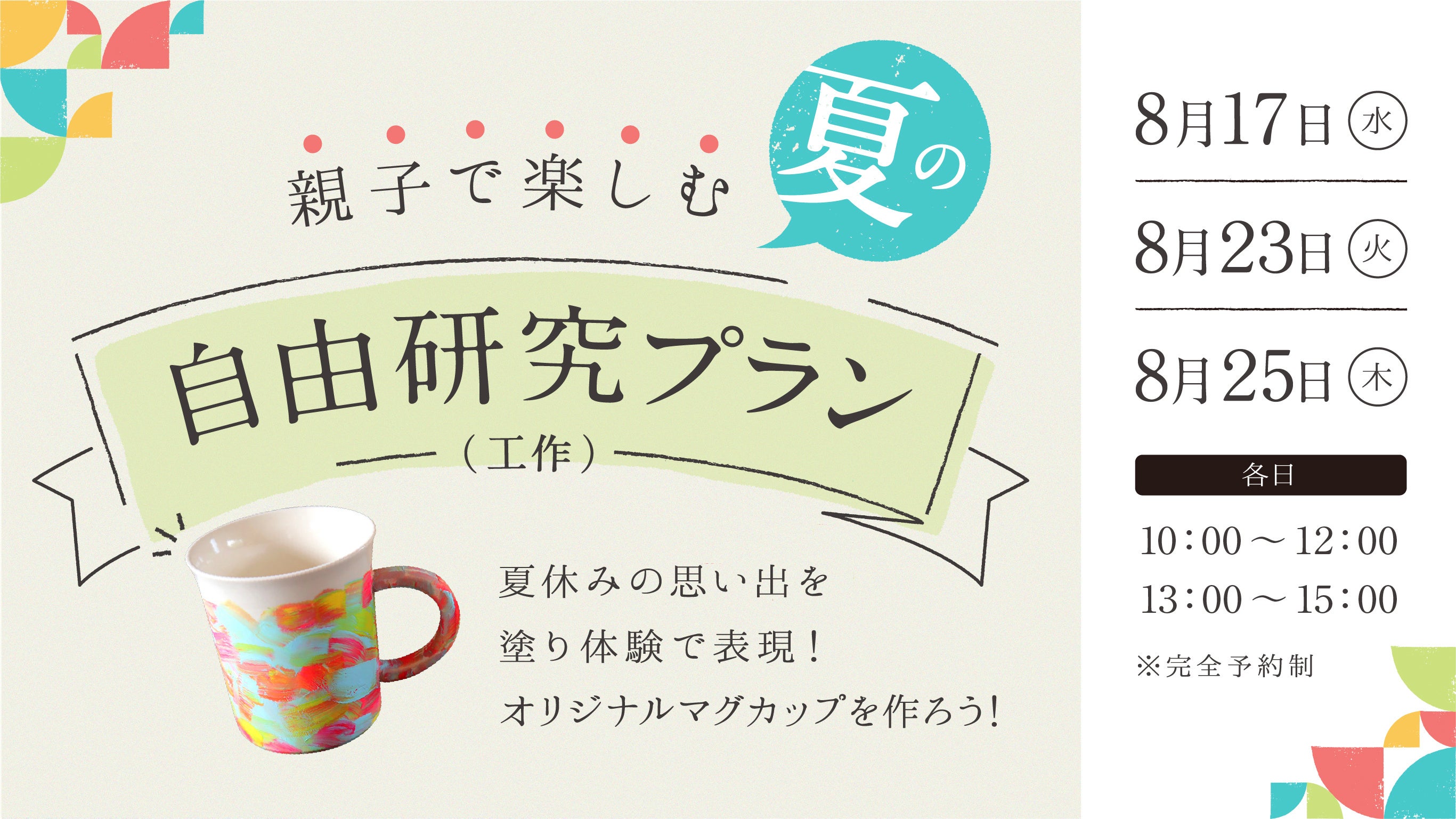 “創造力がくすぐられる、ひととき” を願うオーナーの想いから生まれた、親子で体験できる「夏の自由研究(工作)スペシャルプラン」は、アートとカフェ、2つのステップに分けられたトータル120分の体験はそのままに、その日の体験すべてが夏の思い出となり、夏休みの宿題である自由研究(工作)にもつながるプランにしました。