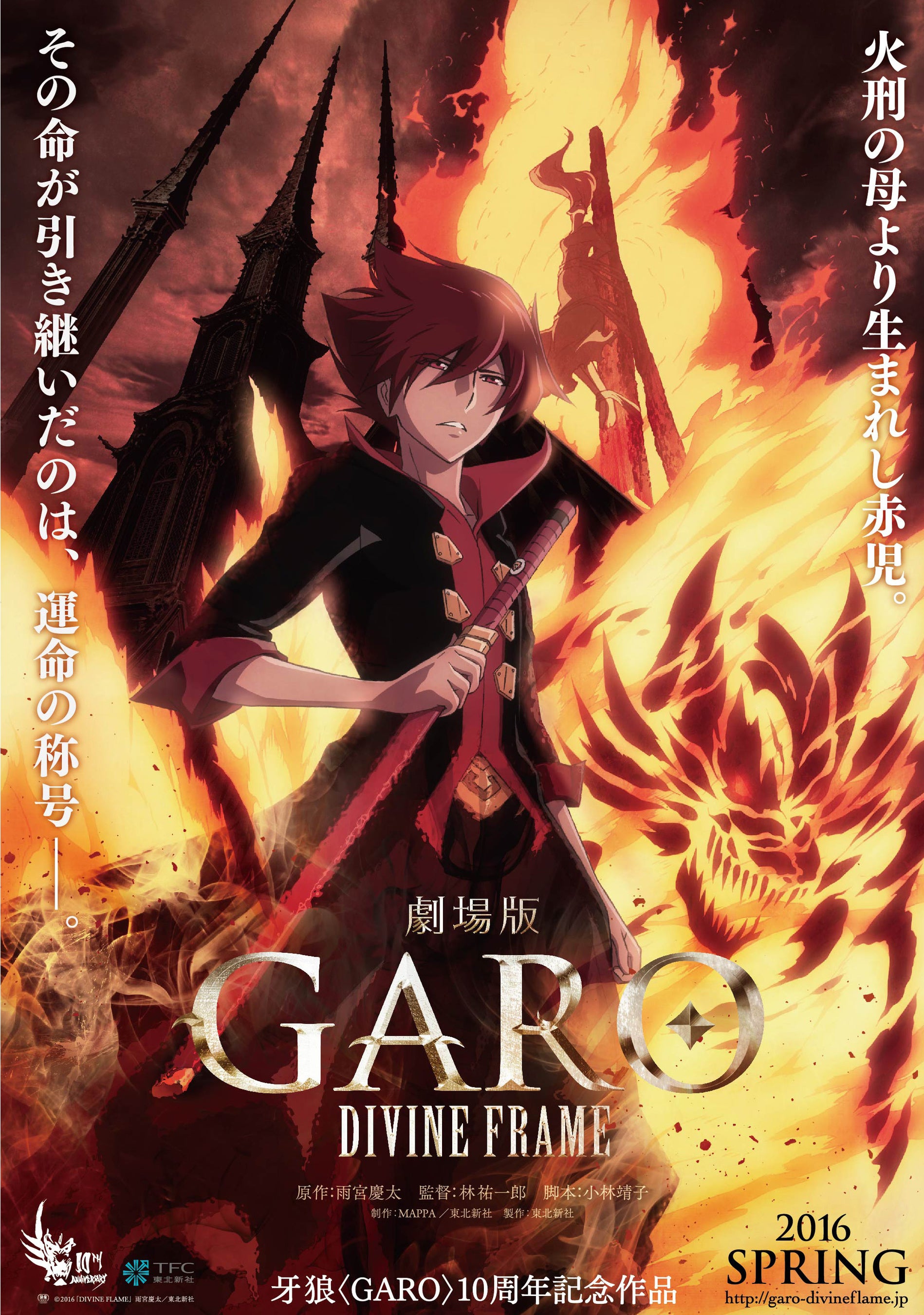 【アニメスタジオ MAPPA】林祐一郎 監督 2016年制作「劇場版 牙狼<GARO>-DIVINE FLAME-」上映& 佐咲紗花ミニライブ+トークショー開催!「黄金騎士」展示&牙狼関連グッズ販売!