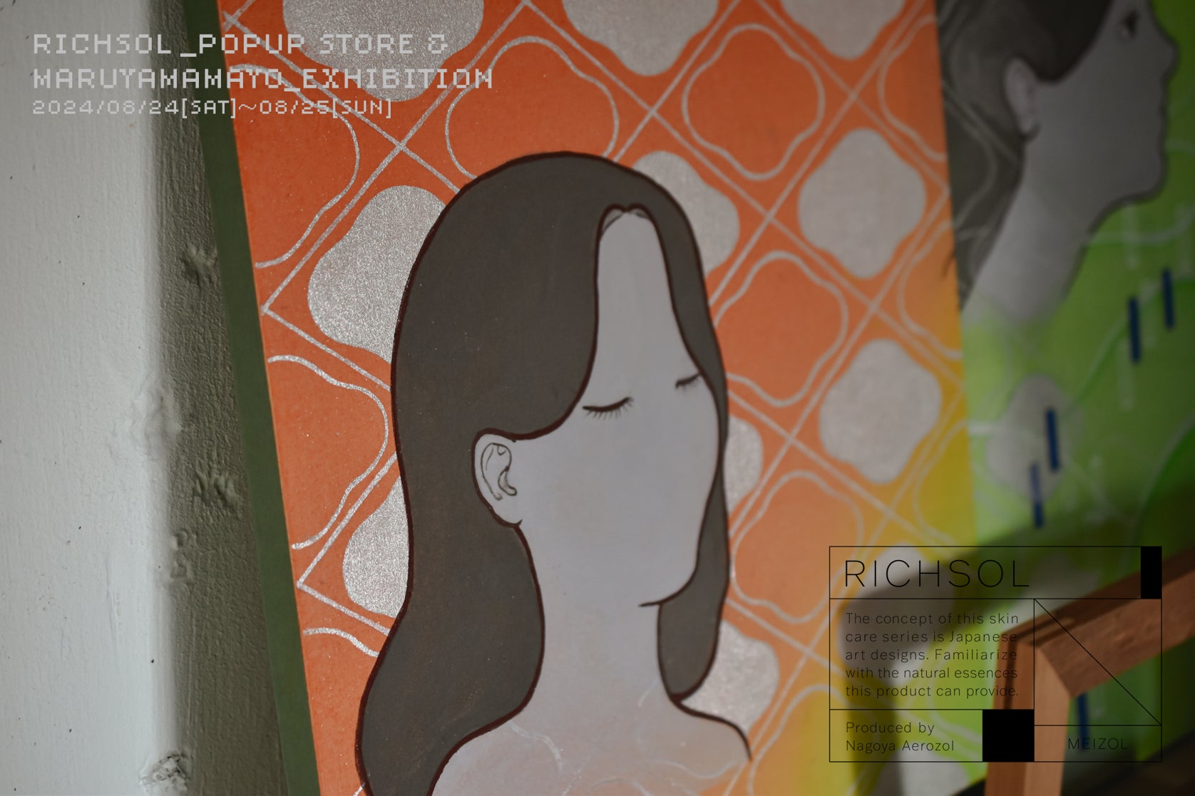 RICHSOLシリーズの販売開始を記念して、POPUPストアを兼ねた日本画作品展を開催いたします。シリーズパッケージデザインの元になった作品のほか、まるやままよの過去作も併せて展示。展示だけでなく、RICHSOLシリーズの販売も行います。