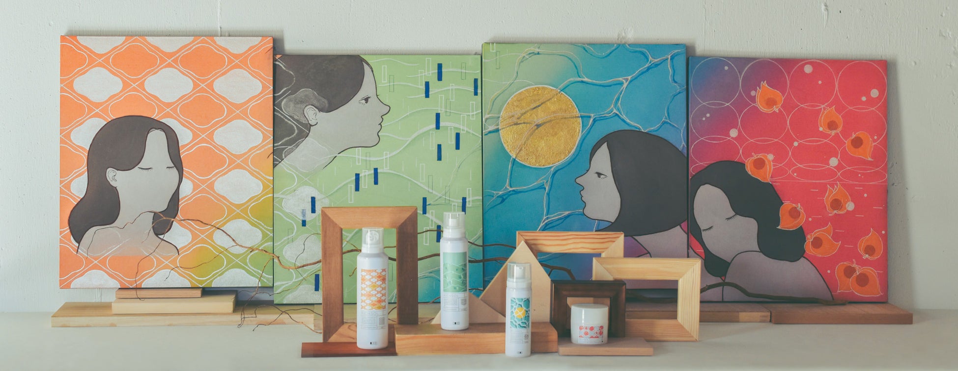 パッケージデザインのモチーフとして日本画作品を採用し、季節の移ろいやシリーズを通してお使いいただくことでお肌も心も満ちていく様子を4つの連作によって表現しています。