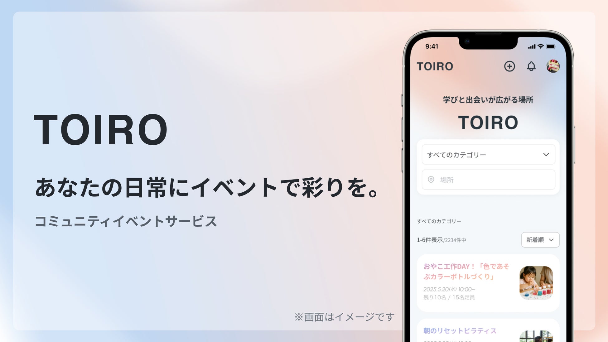 コミュニティイベントサービス「TOIRO」を使用いたします。