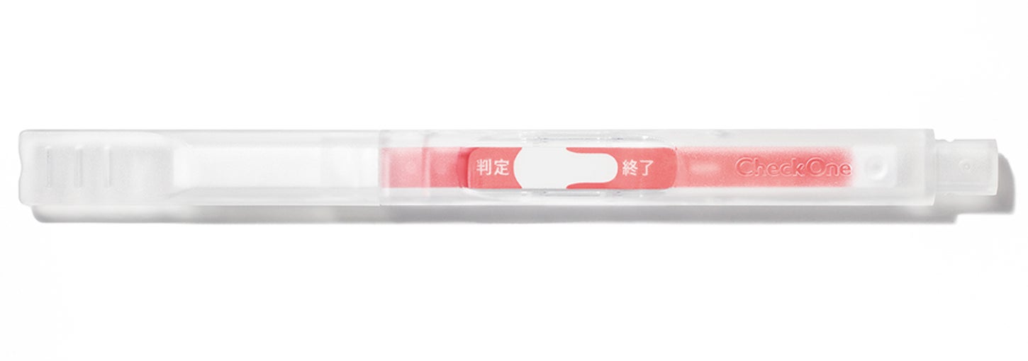 当社が従来発売してきた妊娠検査薬「チェックワン」は尿吸収体に尿をかけて検査をしますが、判定結果が判明する1分後まで正しく検査ができているかがわかりませんでした。当社は検査時のドキドキや不安は妊娠に向き合う気持ちだけでなく、検査が正しく行われているかがわからないことにも起因すると考えました。そこで、尿をかけてから検査過程を目で追うことができるクリアボディを取り入れたスティック「Smart Stick」を開発し、「チェックワン S」に採用いたしました。