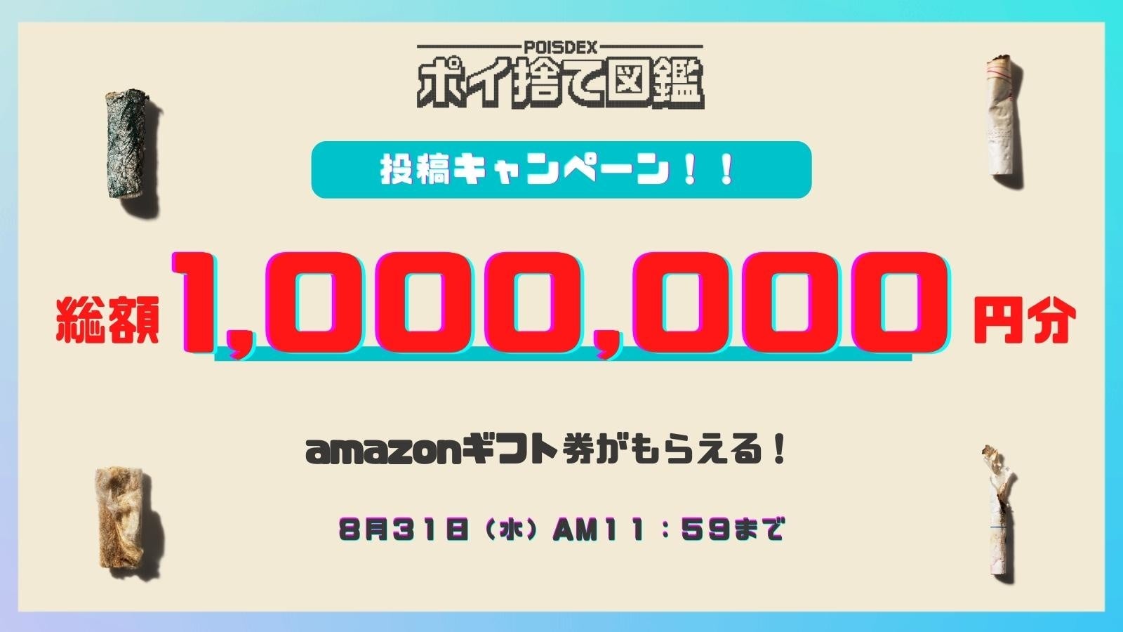 この度、ポイ捨ての更なる削減を目的とし、2022年7月12日(火)PM8:00から2022年8月31日(水)AM11:59まで総額100万円分(amazonギフト券)の投稿キャンペーンを開催します。