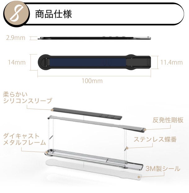 製品サイズ:長さ100mm×幅14mm×厚さ2.9mm