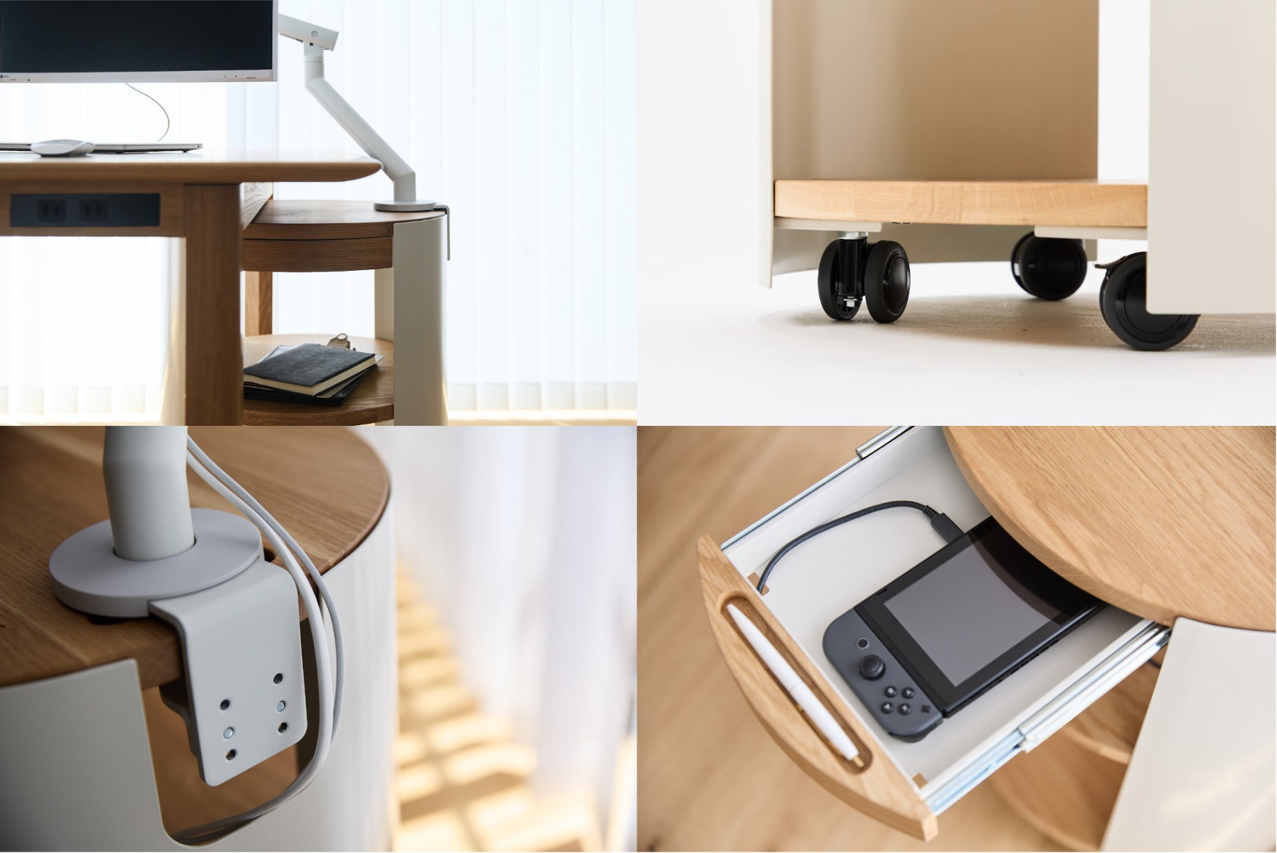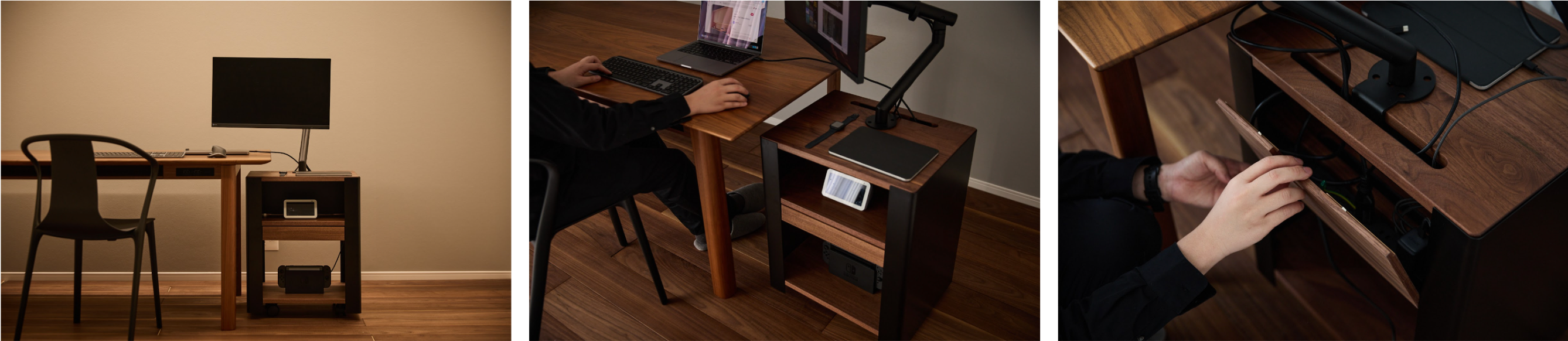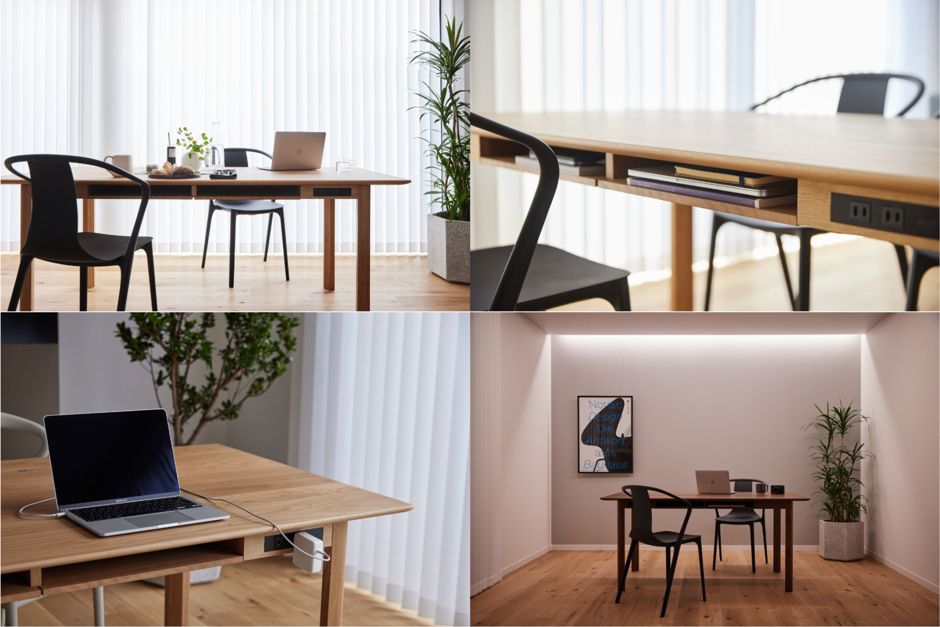 デスクは⻑時間すごす場所であり、⽇々新たな価値を創造する場所でもあります。そこに向かう時、気持ちの昂りを感じられるような、佇まいと使い⼼地を追求しています。