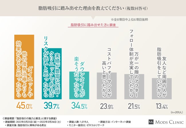 また、約4割の方は医師・クリニック選びを正しく行えば、施術によるリスクやダウンタイム軽減に繋がると考え、脂肪吸引に踏み出せたことが分かりました。