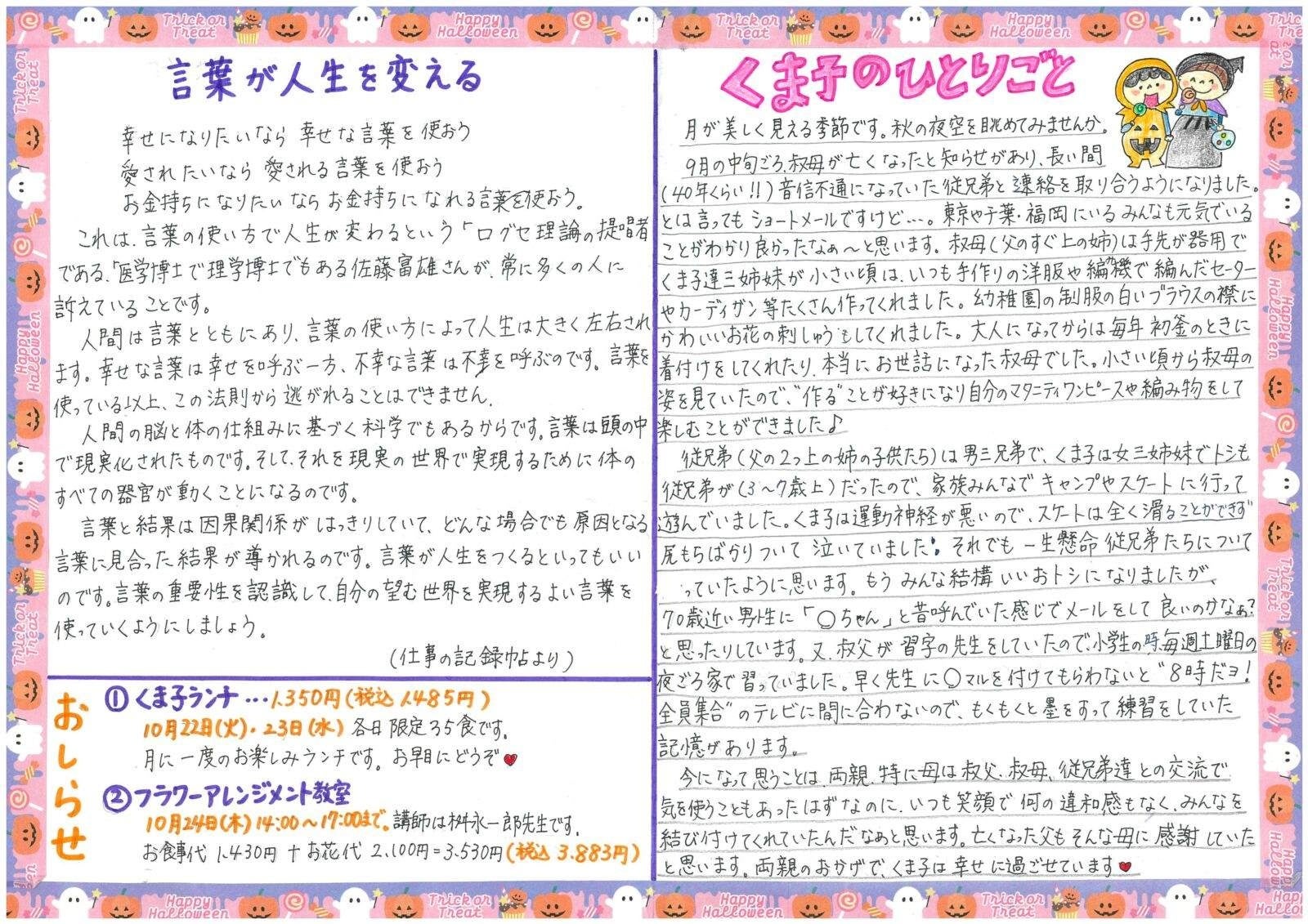 直近の9月の『くま子のひとりごと』はこのような内容です。
