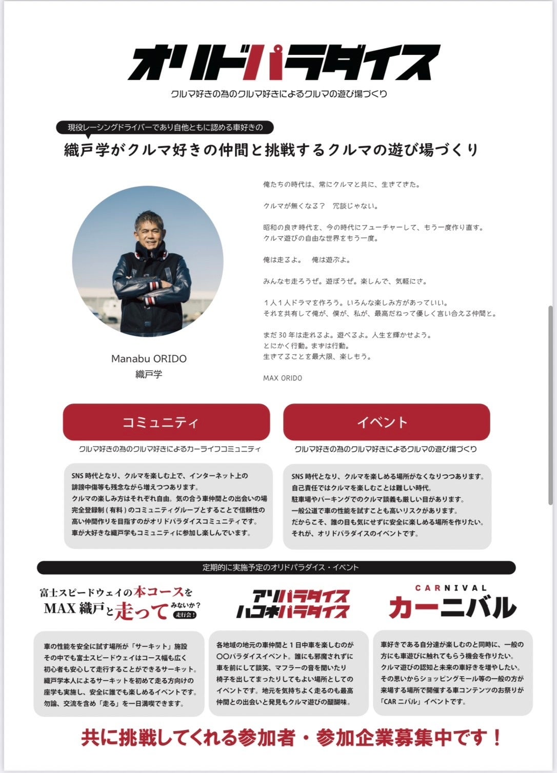 織戸氏とは「オリドパラダイス」の名称でイベントやコミュニティを一緒に展開させて頂き、今回、本格的な初PRの場としてTOKYO AUTO SALON 2023 へ出展し、MAX ORIDOブースにてコラボレーションを実現した。