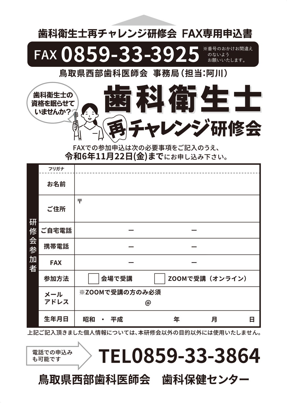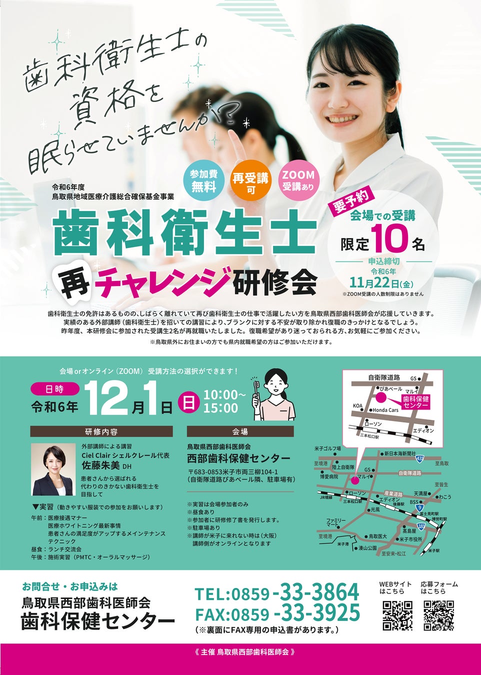 【鳥取県西部歯科医師会】令和6年 歯科衛生士再チャレンジセミナー参加者募集中