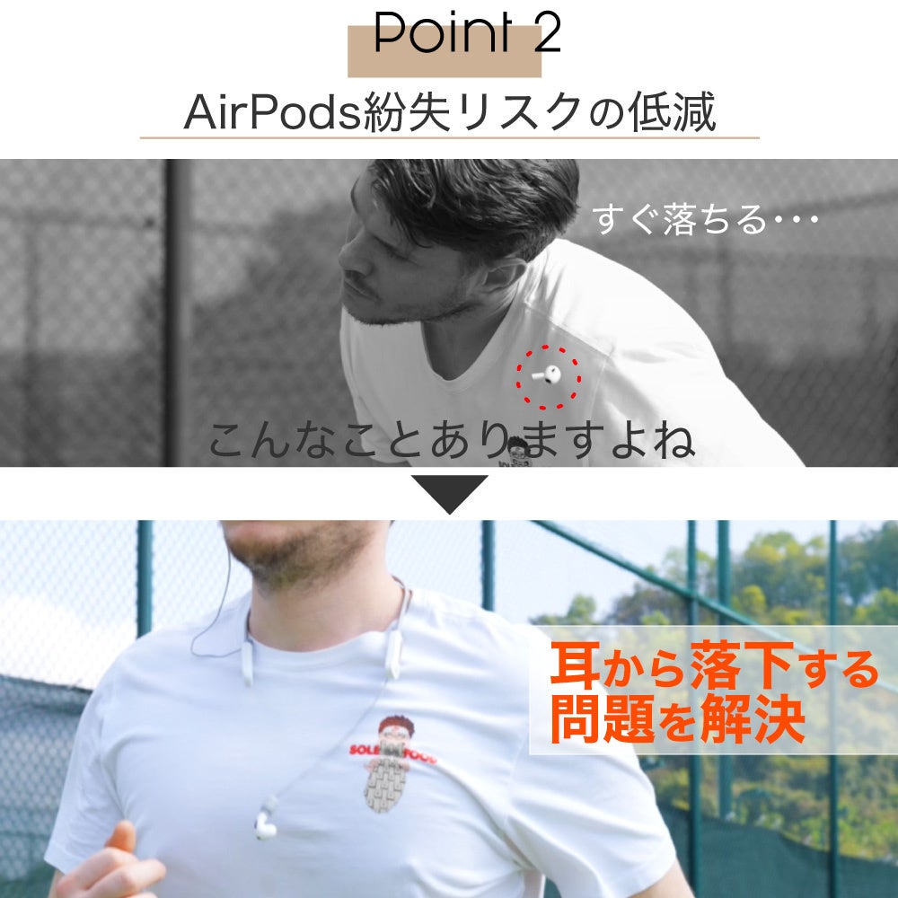 使いやすさと軽さを両立したデザインで、わずか32gの超軽量設計が特徴です。プラグを差し込むだけで簡単に充電を開始でき、最大18時間の連続再生が可能です。また、ネックストラップ型のため、運動中や移動中のAirPodsの落下を防止することができます。