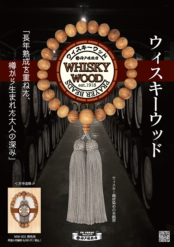 京都の珠数製造卸業である株式会社 神⼾珠数店(代表取締役社⻑:神⼾ 伸彰)は、このたび、⻑年ウィスキーを熟成させた樽から⽣まれた⼤⼈の為の新商品「ウィスキーウッド」の販売を開始いたします。