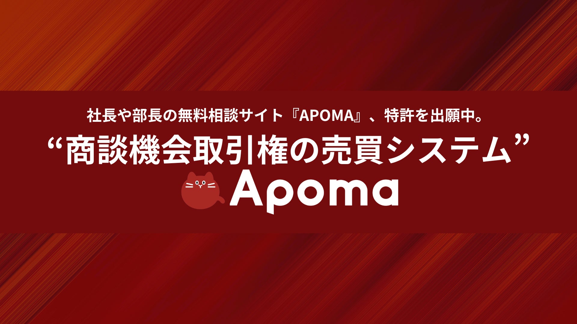 【社長や部長の無料相談サイトAPOMA】Sales-TechスタートアップAPOMAが、独自技術『商談機会取引権の売買システム』で特許を出願。