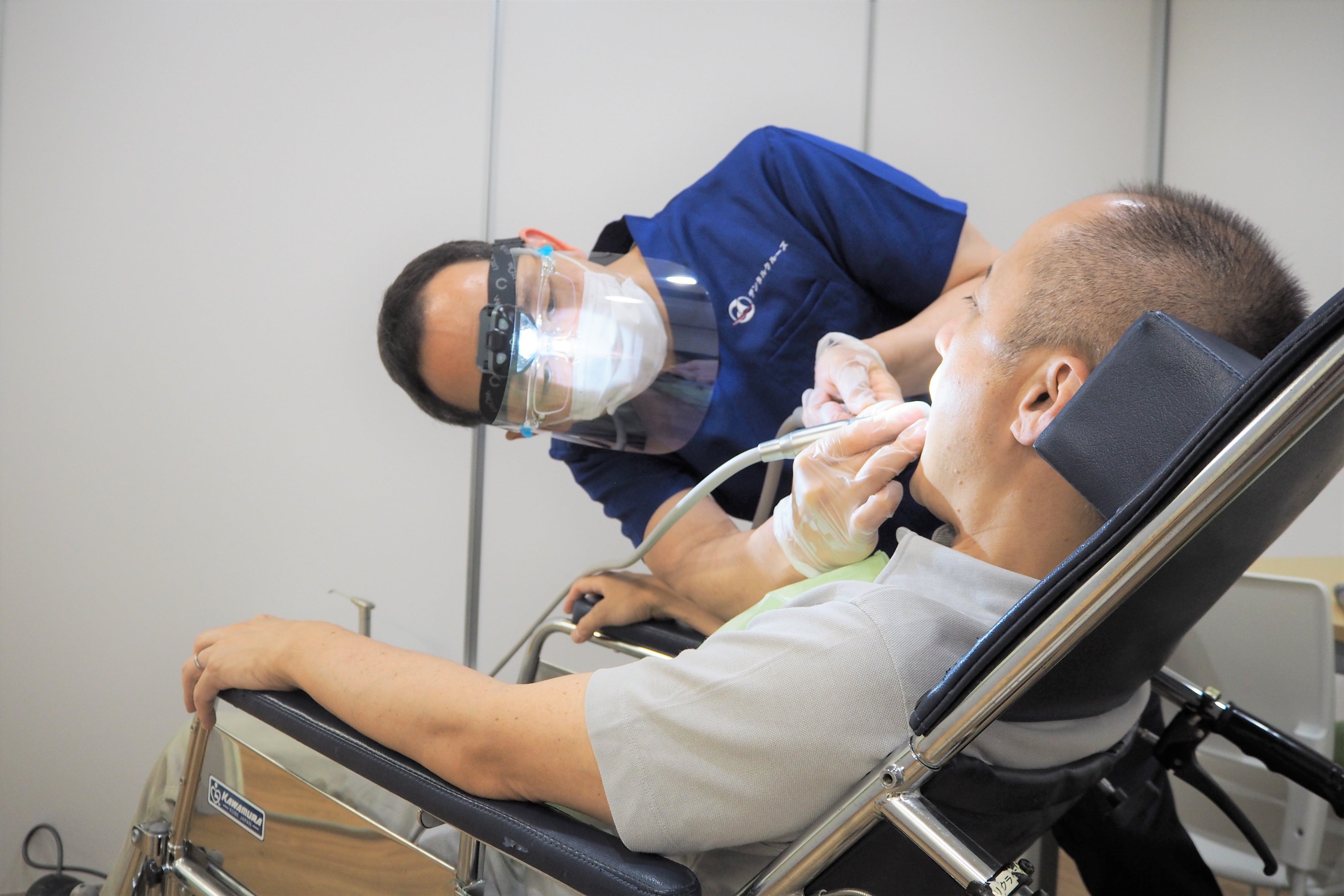 私たちの患者さんは、主に介護が必要な高齢者の方。自分で歯科に通えない患者さんのために、介護施設やご自宅にうかがって診療をおこなっています。