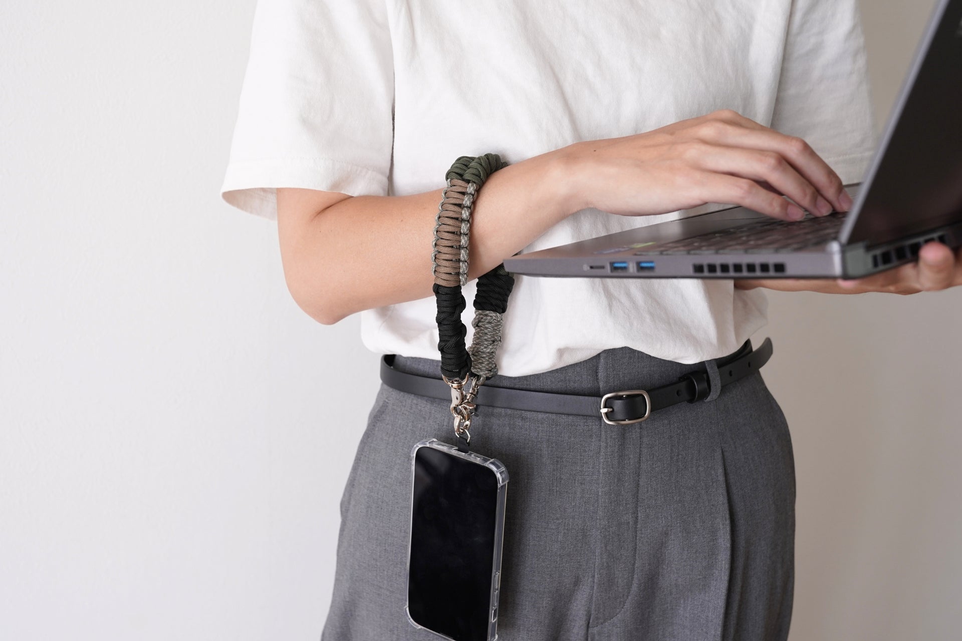 パラクリップは、ただのストラップではなく“日常に寄り添うアクセサリー”として開発しました。私たち自身、スマホや鍵をバッグの中で探すちょっとしたストレスを感じてきましたが、その不便を解消しながら、装いにさりげなく彩りを添えられるようデザインしています。立体的な編み込みや素材感にこだわり、ひとつひとつに手しごとの温もりが宿っています。だから実用的なのに、アクセサリーのように自然とスタイルに馴染むんです。現在発売中の『そのまま使えるPCケース』との組み合わせでもお楽しみいただけるので、毎日の相棒としてぜひ手に取っていただければと思います。