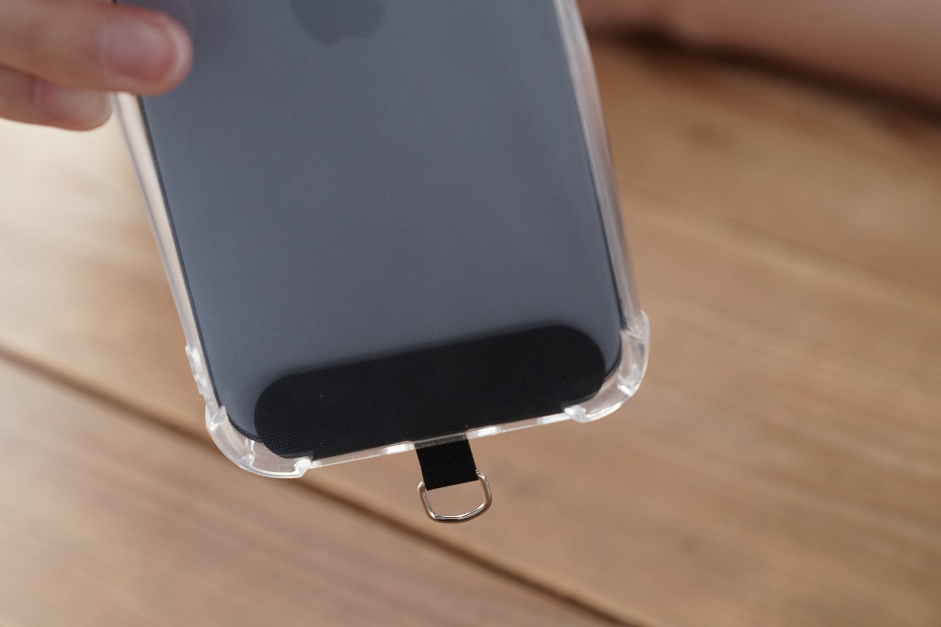 届いてすぐに使えるスマホストラップホルダーも付属します。