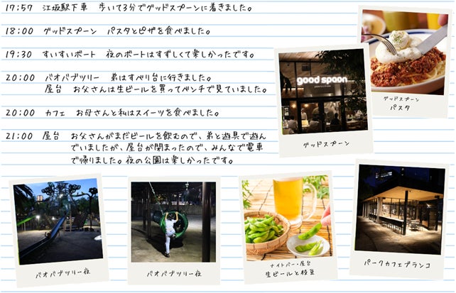 ■ 江坂公園で過ごす夏休みのご提案・夜の部(小学生の絵日記風)