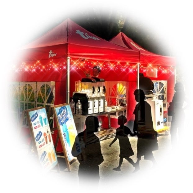 すいすいボートイベント会場近くに、公園常設のベンチの他に、テーブル・ベンチも設営して、ナイトバー(アルコール専門店)を営業します。この他、名物「名古屋コーチン骨付もも肉」やおつまみも提供する焼き鳥店、ソフトドリンク店の計3店に、全日営業期間(8/13~18)には、さらにもう1店も出店して、計4店で営業します。