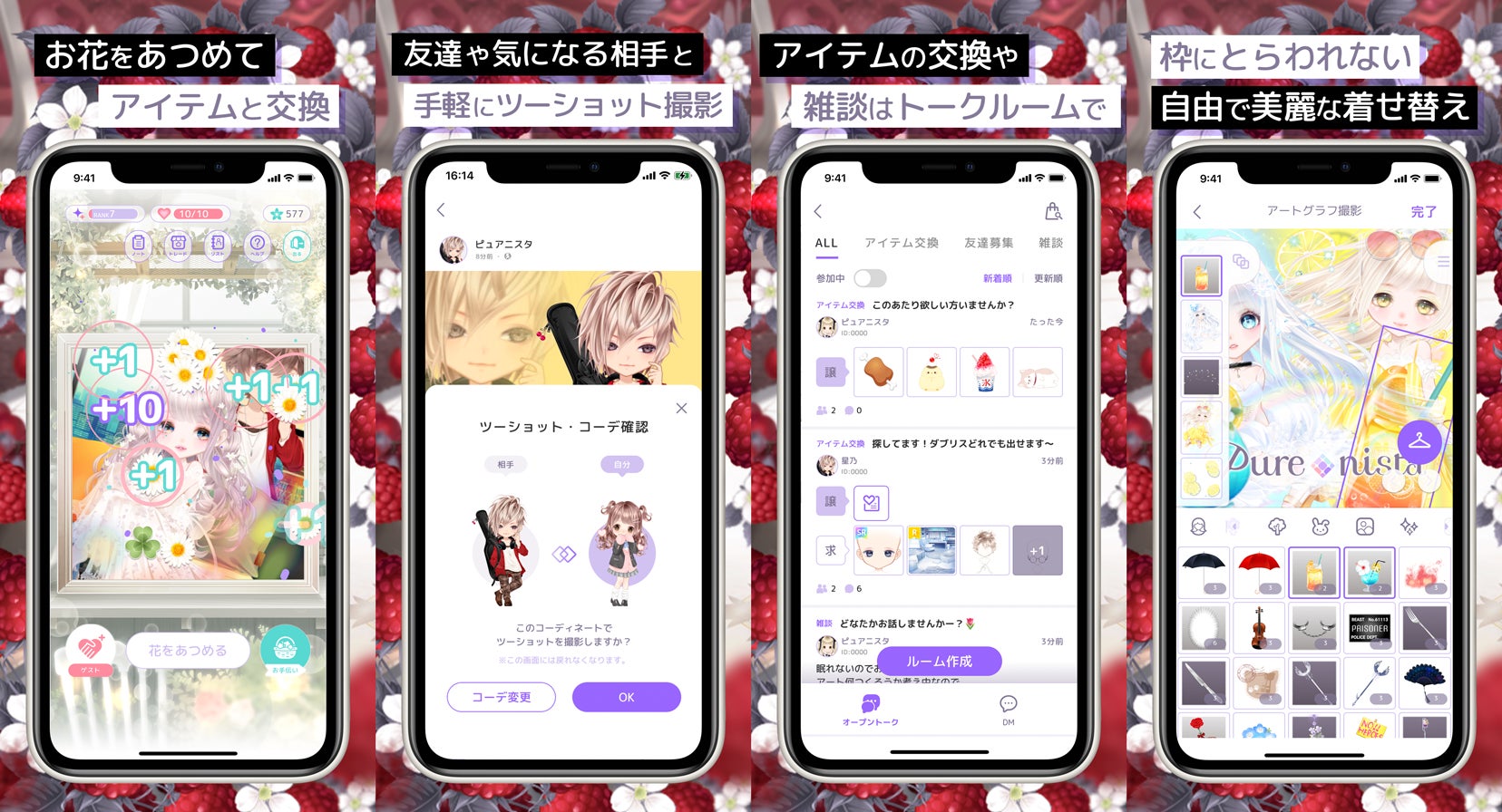 大人も楽しめるきせかえアプリ【ピュアニスタ】は、きせかえを「遊びのおまけ」ではなく「遊びそのもの」として楽しめることを追求し、きせかえを通じてお客様に「自分らしくいられる居場所」を提供するための「新感覚アバターきせかえアプリ」です。