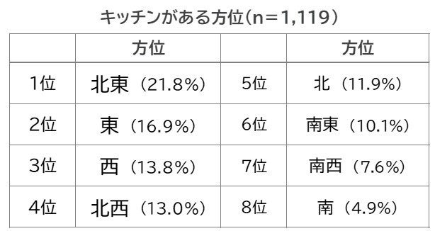 ■キッチンがある方位1位は「北東」、2位「東」、3位「西」