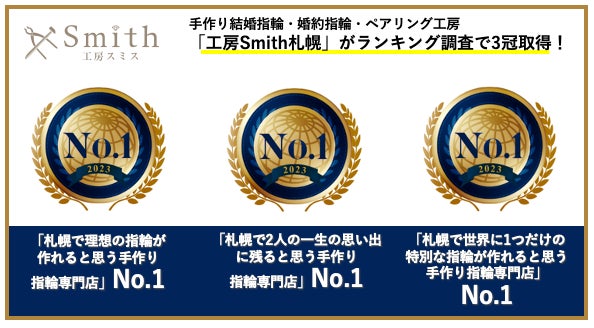 手作り結婚指輪・婚約指輪・ペアリング工房「工房Smith札幌」、JAPAN TRUST RESEARCHのNo.1ランキング調査で3冠取得