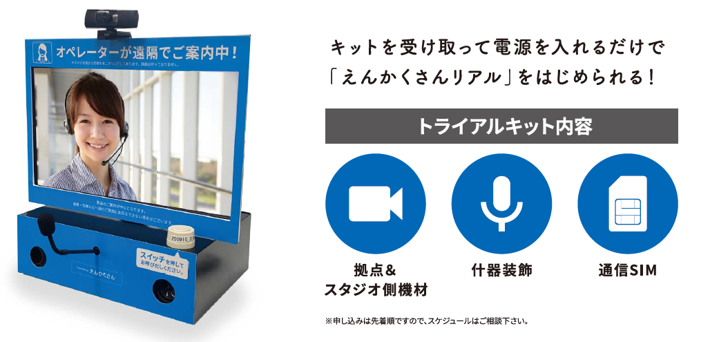 2021年8月より1か月間トライアルを実施。インフォメーションを完全無人化し、主に施設内のご案内や、催し物のご案内等を実際に対応。「えんかくさんリアル」により「リモート受付を安定して実現できる」と評価いただき、本格導入を決定、以降安定運用いただいております。