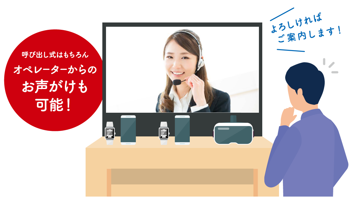 通常の遠隔接客では、来店されたお客様の物理的なボタン操作などを起点にオペレーターとの会話がスタートしますが、お客様が呼び出しを躊躇したり、積極的な活用をためらうケースがありました。「えんかくさんリアル」はオペレーター側からの声がけによって、自然にお客様との会話をスタートすることができるため、1日の接客機会が約3倍※に増加します。