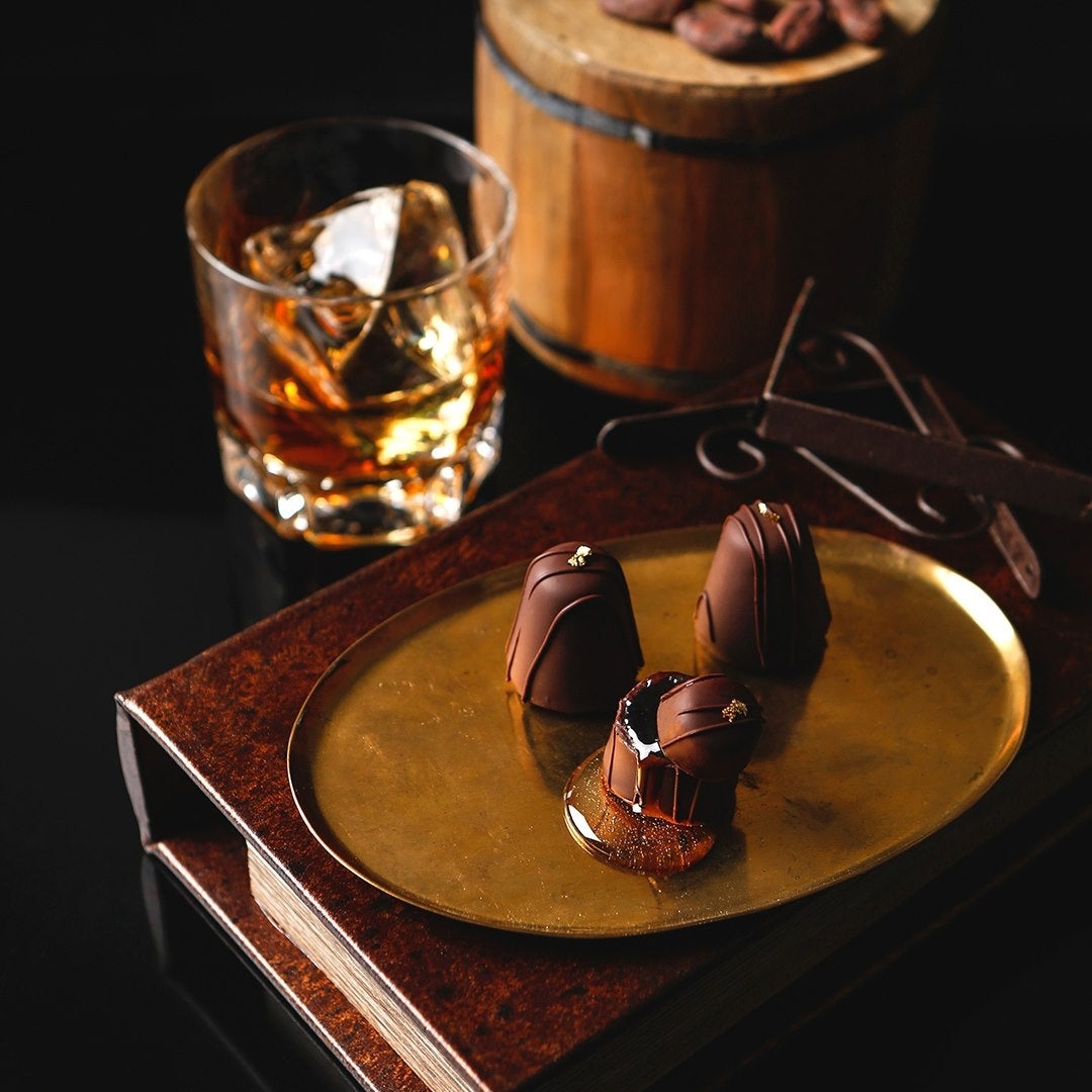 果実のようなアロマを持つコロンビア・サンタンデール産カカオ豆からつくられたチョコレートの中に、こだわりのウイスキーを練り込んだガナッシュをチョコレートでコーティングしました。
