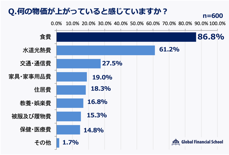 業界最多の講座数を誇る日本最大規模の金融オンラインスクール「グローバルファイナンシャルスクール」(以下略:GFS、東京都港区、市川雄一郎校長)は、全国20〜40代の女性663人に、最近の物価に関するアンケートを実施しました。