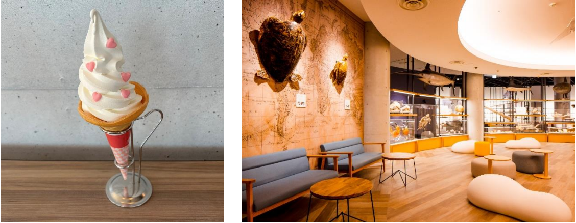 館内で遊んだ後は、カフェでソフトクリームを食べながらホッと一息くつろいでみてはいかが?