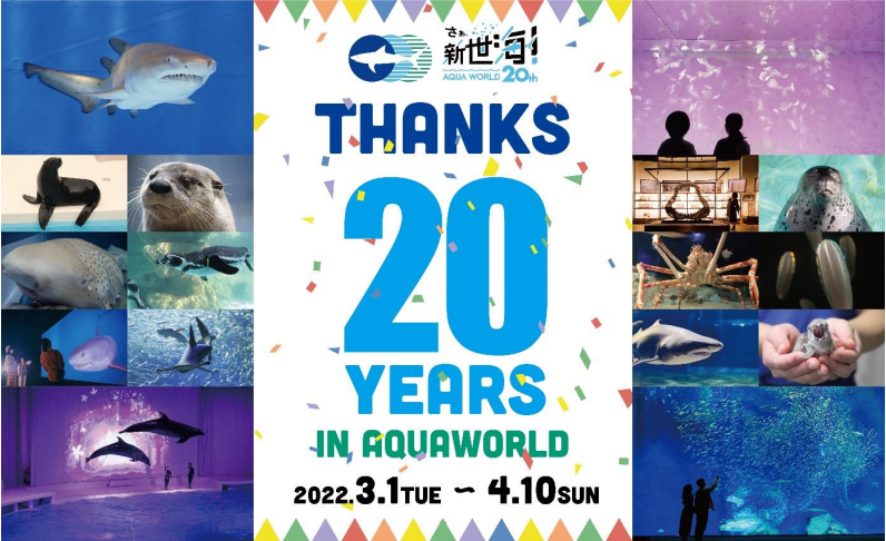 2022年3月21日(月・祝)で開館20周年を迎えるにあたり、日頃より当館をご愛顧いただいている皆様への感謝の気持ちを込めた特別企画「THANKS 20YEARS in AQUAWORLD」を3月1日(火)~4月10日(日)の期間で開催中です。