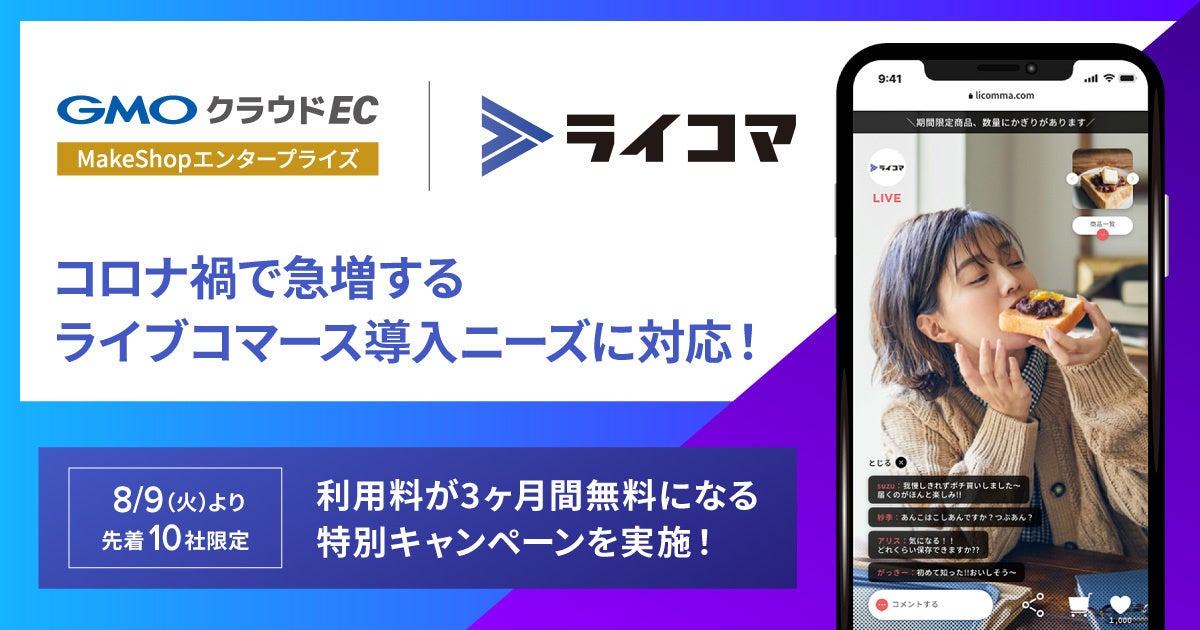 ライブコマースツール「ライコマ」が「GMOクラウドEC」の『MakeShopエンタープライズプラン』と連携