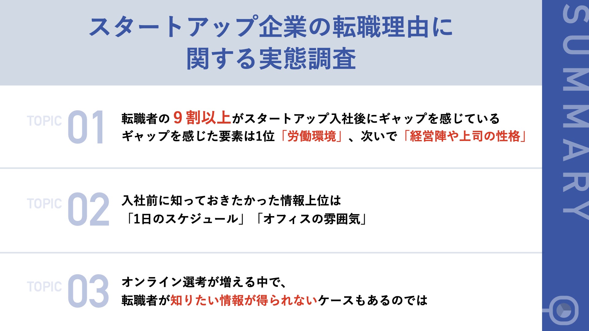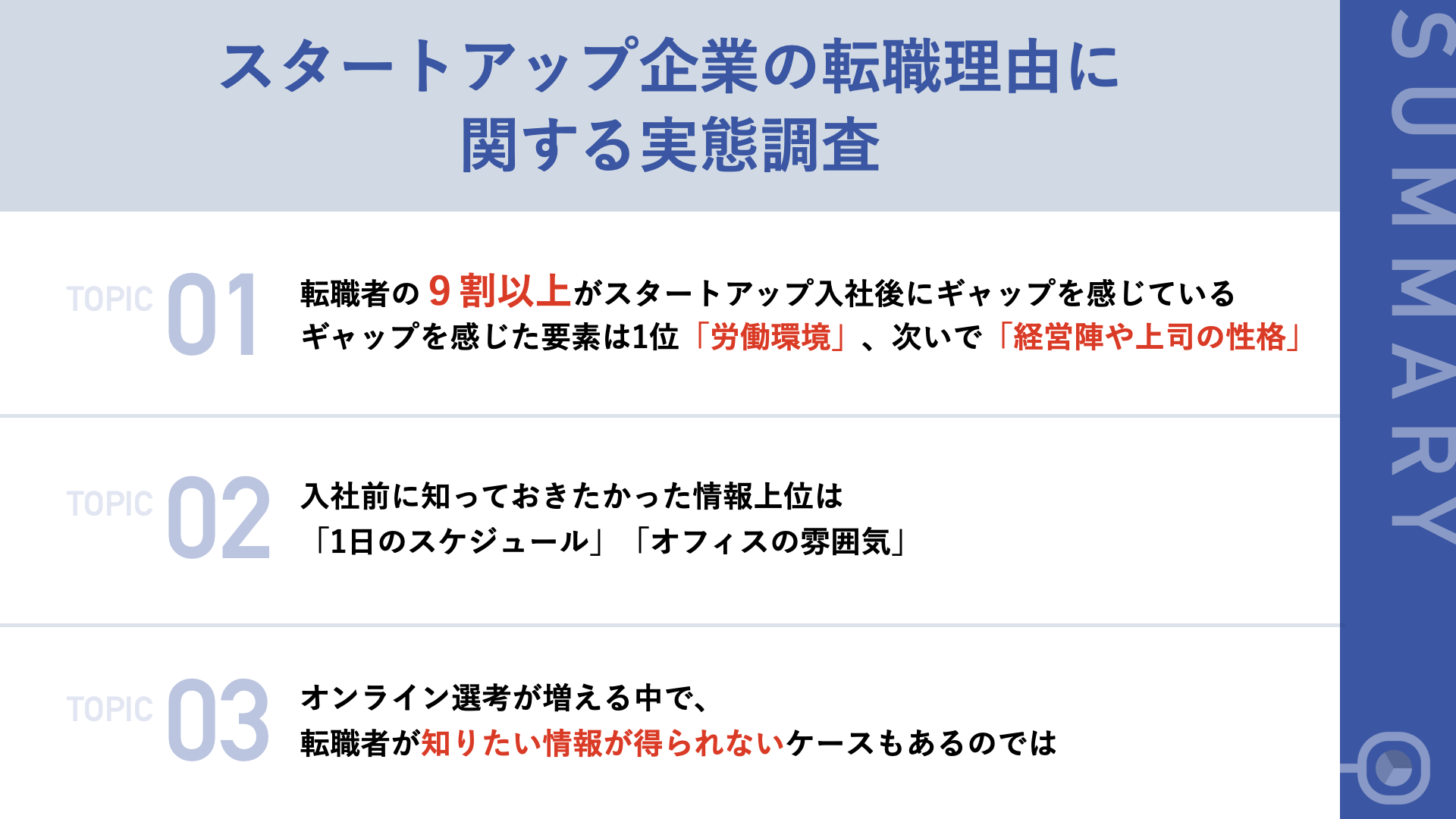 - 「1日の仕事スケジュール」や「オフィスの雰囲気」などの定性情報を、入社前に知っておきたかったという声多数