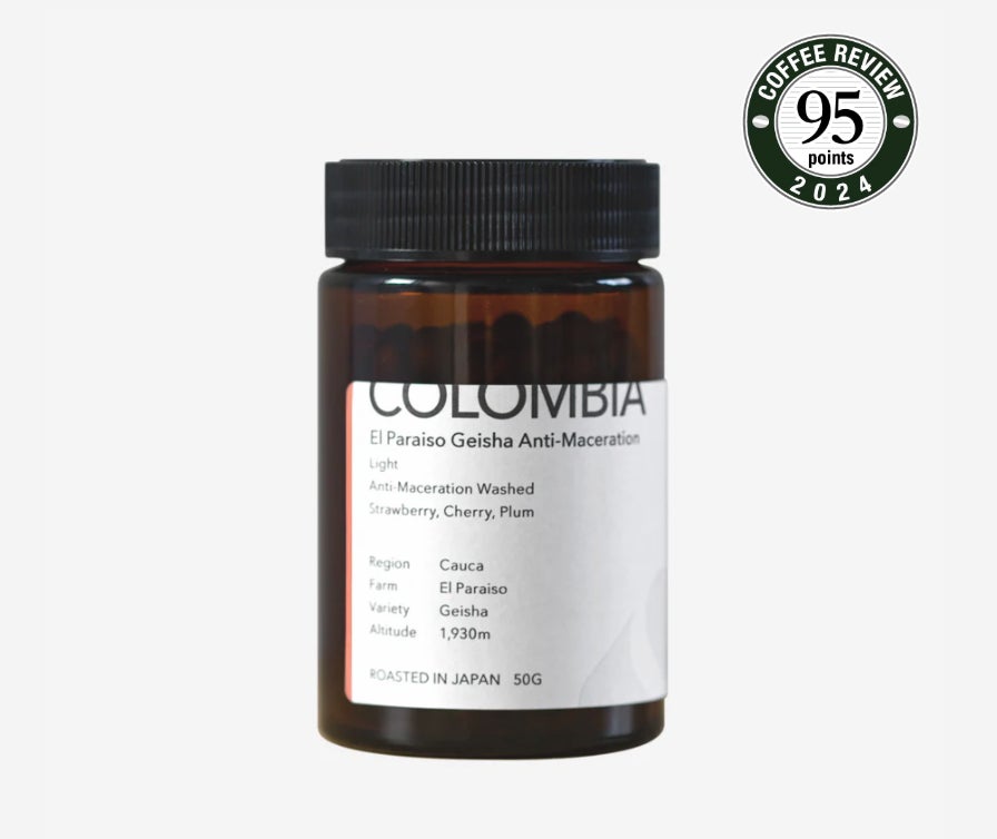 もうひとつはコロンビア・カウカの「エル・パライソ ゲイシャ アンチマセレーション」。独自の低温乾燥がもたらす甘さとコクが特徴で、COEにおいて最高落札価格を記録したその個性を堪能できる。