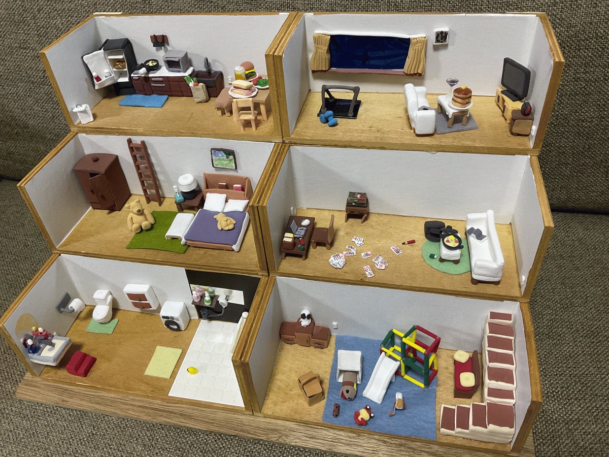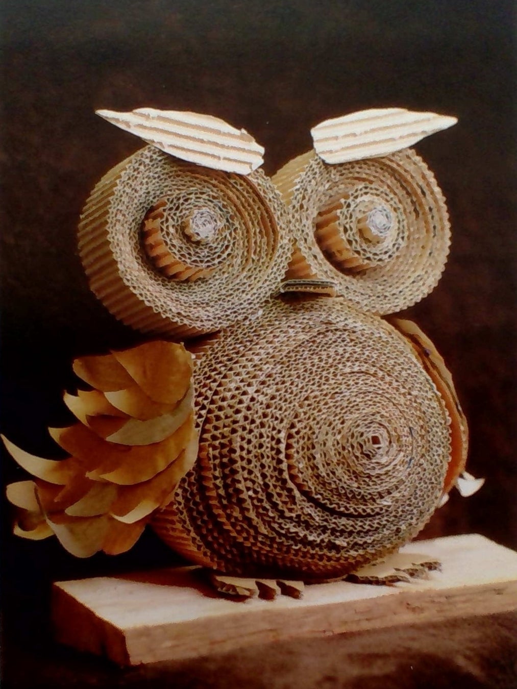 私も片ダンボール紙を作りますが、両面の紙がはがれてしまうことが多いので、それだけに作者の努力がわかります。