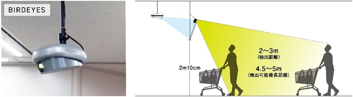 P3の新製品である、背面照射型BIRDEYES(バードアイズ)を店舗の5カ所に設置しました。表示画面上部に取りつけた超小型カメラにて、人影と目線を計測し視認率を算出しております。