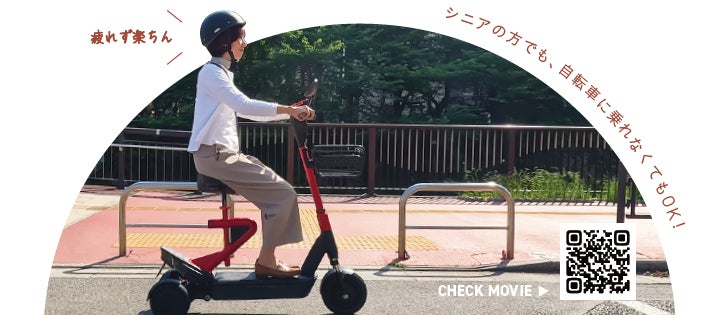 自立する三輪モデルだから、倒れる心配はありません。発進時もキックなどの操作が必要なく、乗ったままスタートできます。