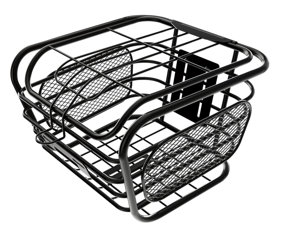 カゴの取り付けが可能。荷物もヘルメットも入る便利なオプション