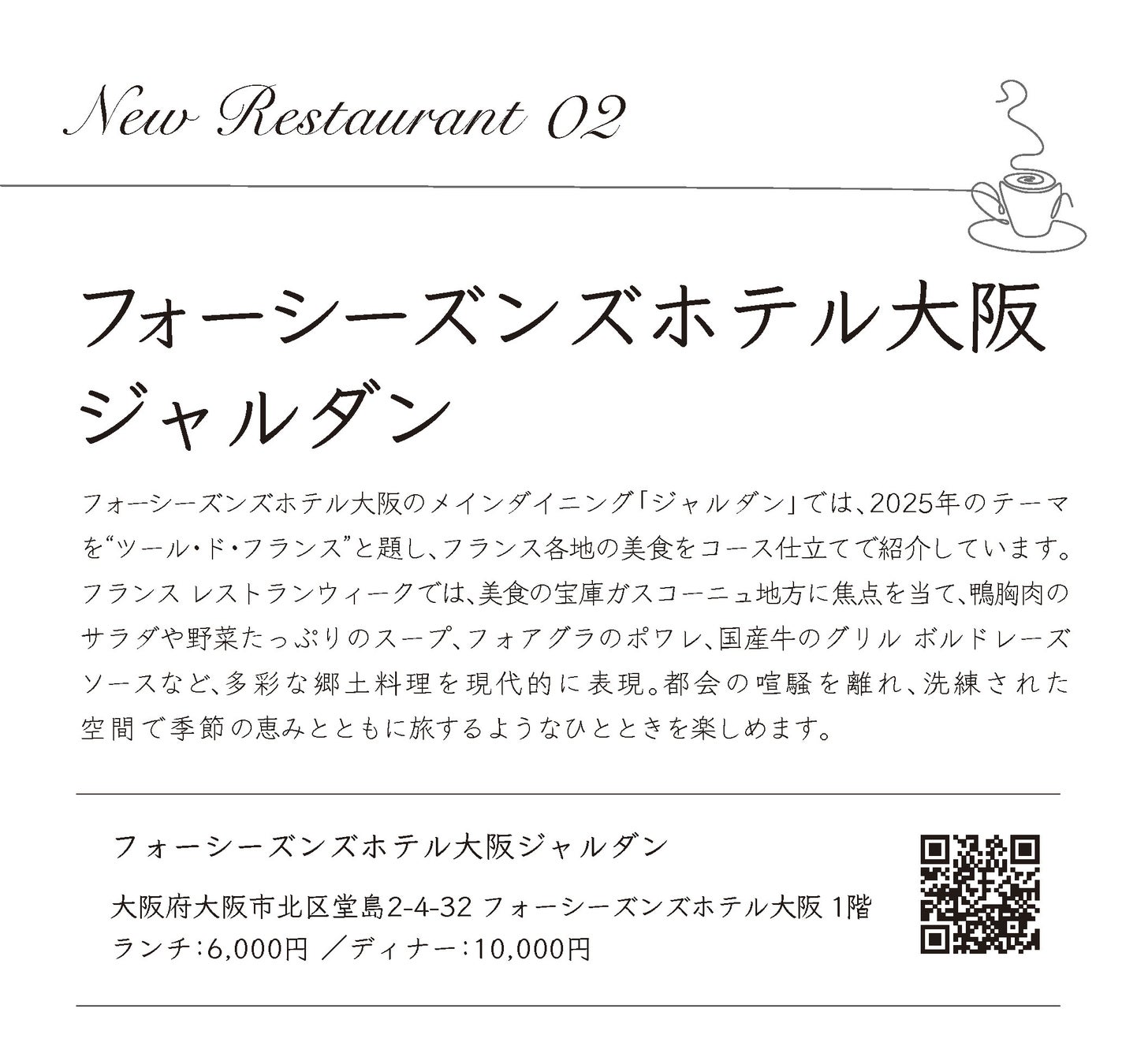 グループ・アラン・デュカス株式会社(代表:アラン・デュカス)は、9月20日より開催中の国内最大級のフランス料理イベント「ダイナースクラブ フランス レストランウィーク2025」において、大阪エリアでおすすめレストランをご紹介いたします。