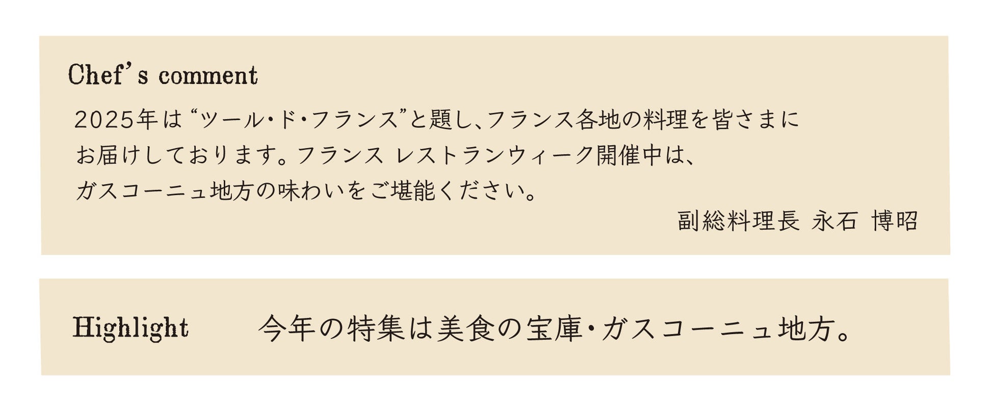 本年のテーマは「フランス地方料理」。各地域の個性豊かな一皿を通じて、フランスと日本の食文化をつなぐ架け橋となることを目指しています。