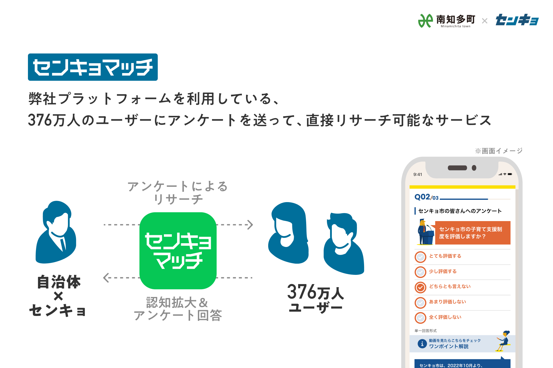 株式会社センキョ(以下センキョ)は、南知多町とセンキョSNSプラットフォームサービス『センキョマッチ』を活用したリサーチを実施したことをお知らせします。