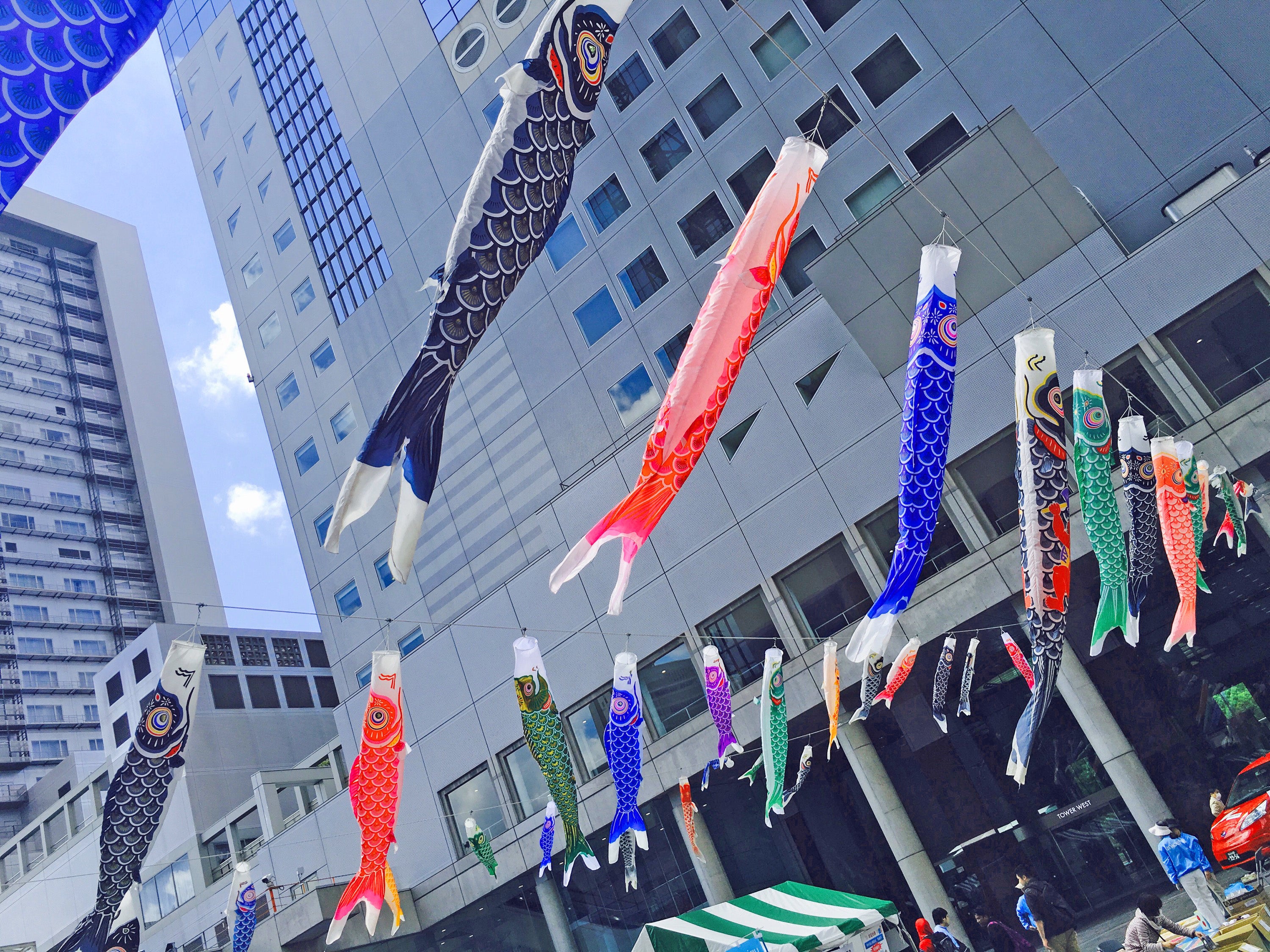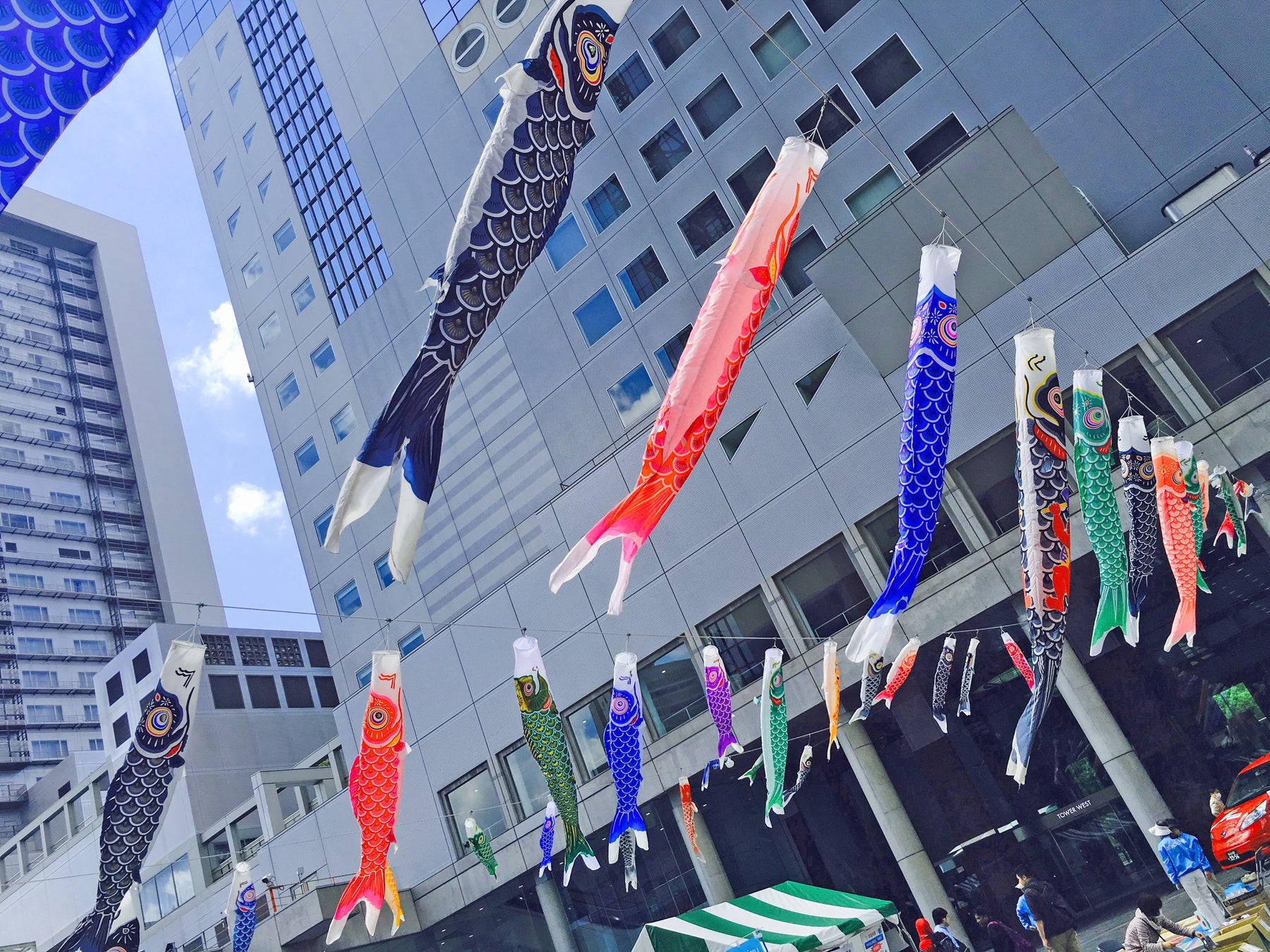 今年は、子どもたちの健やかな成長とともに、長引く新型コロナウイルス感染収束を願い約60匹の鯉のぼりがビルの谷間を泳ぎます。