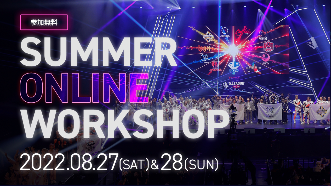 株式会社Dリーグ(本社:東京都港区、代表取締役CEO:平野岳史、代表取締役COO:神田勘太朗、以下「Dリーグ」 )は、2022年8月27日(土)、28日(日)の2日間にかけて、「D.LEAGUE SUMMER ONLINE WORKSHOP 2022」を全国のD.LEAGUEファン、ダンスファンに向けて開催いたしました。